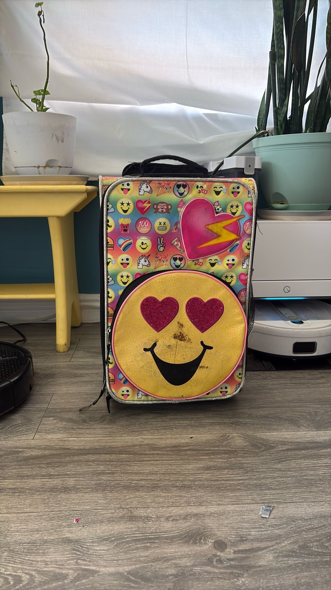 1st pic broken zipper 2nd pic kick the face and the ♡ lights up clean inside, side pocket