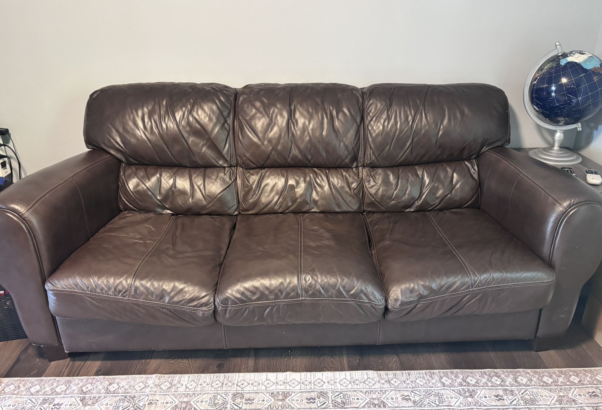 Brown faux leather couch