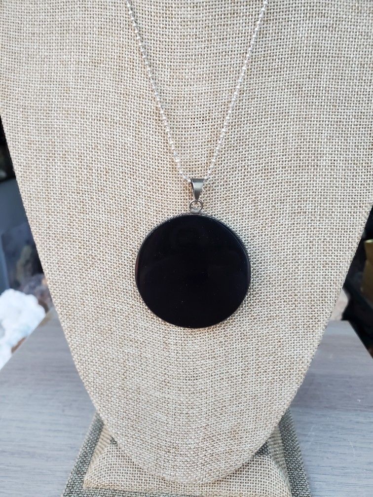 Jet black Obsidian necklace 2" diameter sustainably mined and hand crafted directly from the source in Mexico $45
