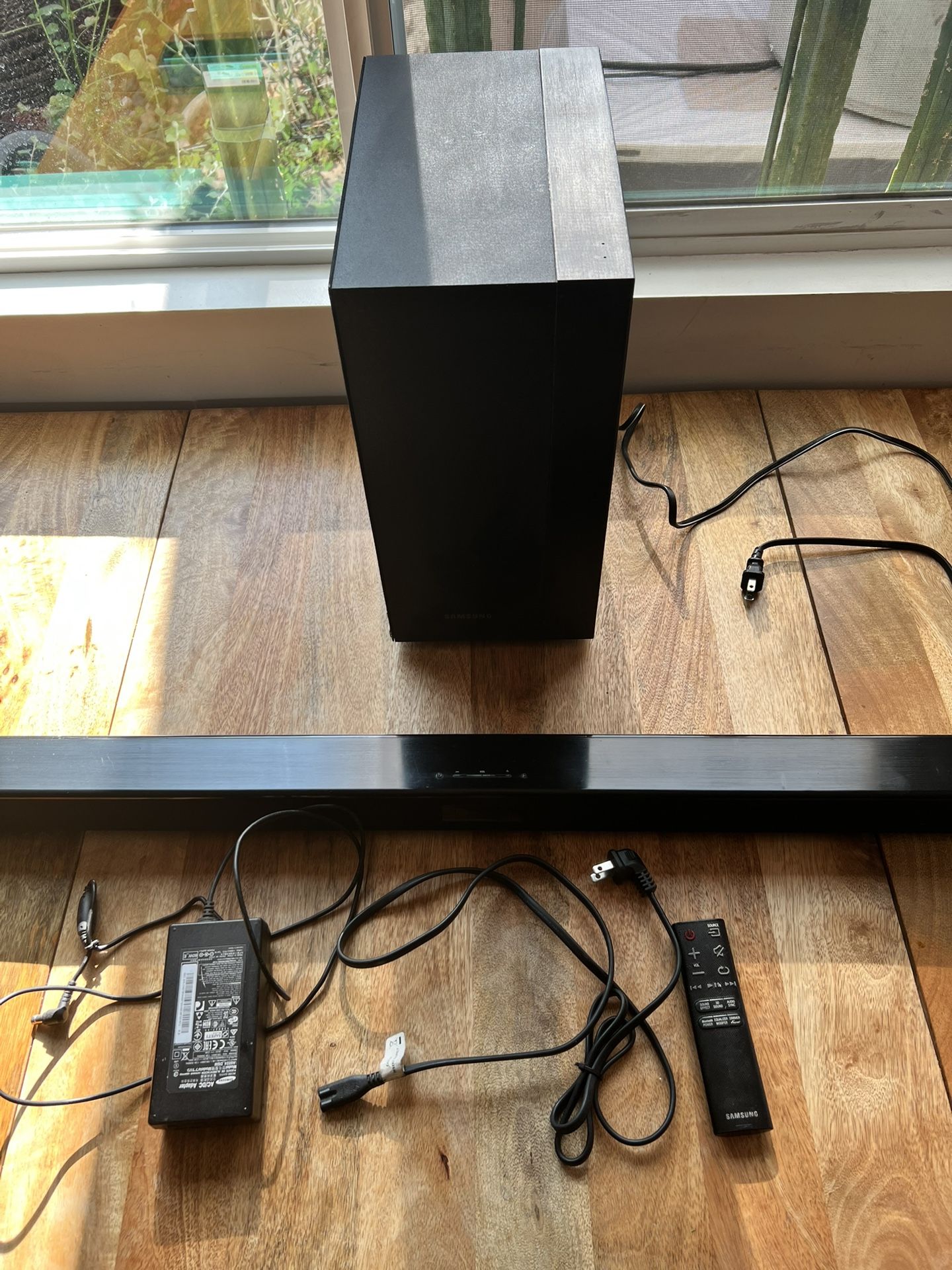Brand: SAMSUNG Speaker Type: Subwoofer, 3D Item Weight: 22 Pounds Power Source: Corded Electric Surround Sound Channel Configuration: 2.1 About this item 290 watt 2.1 Channel USB HDMI Bluetooth Wireless Active subwoofer Smart Volume 3d Sound Plus TV sound Connect Any net Dolby Digital
