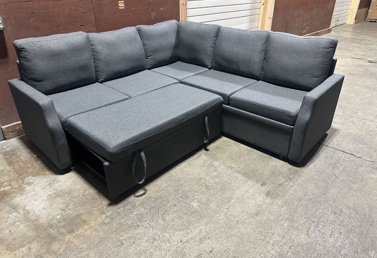 Wayfair Sleeper Sectional w/ Storage – Like New Wayfair sleeper sectional sofa with built-in storage in like-new condition. This is a Wayfair return and has been lightly handled—no stains, rips, or odors. 🛋️ Features: • Pull-out sleeper bed • Hidden storage compartment • Comfortable seating with a modern look • Great for apartments, guest rooms, or Airbnb setups 📏 Measurements: 85” W × 85” D × 38” T 📦 Condition: Wayfair return – like new 🚚 FREE delivery included 📍 Pickup also available Message me to claim it—first come, first served.