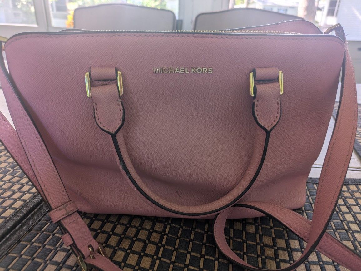Pretty pink leather MK bag. Has shoulder strap. Plenty of space, zipper pocket and attached key holder. Beautiful bag