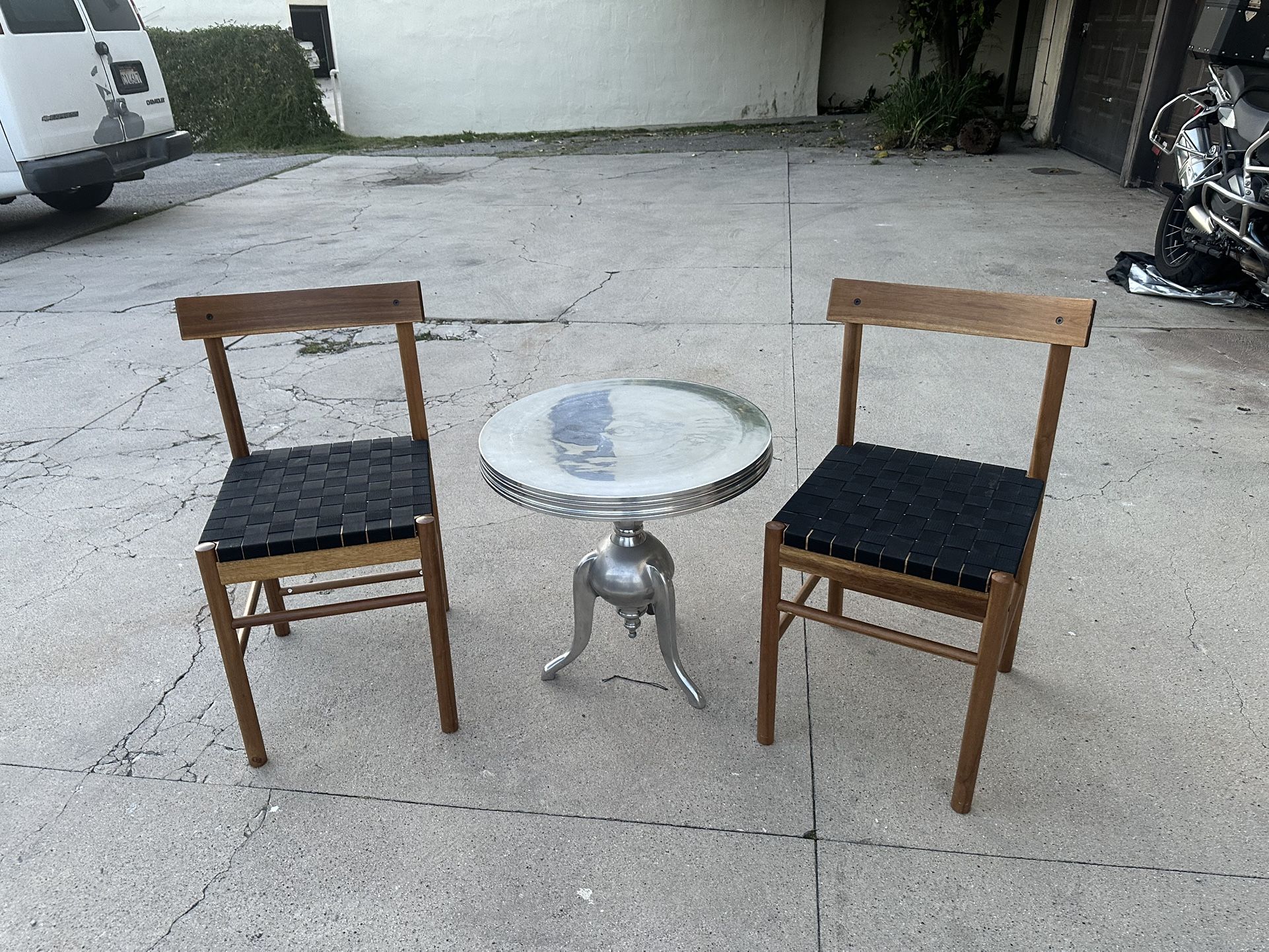 Great for balcony or patios The chairs are like new! The table has a couple of stains can probably be polished Pick up in Glendale