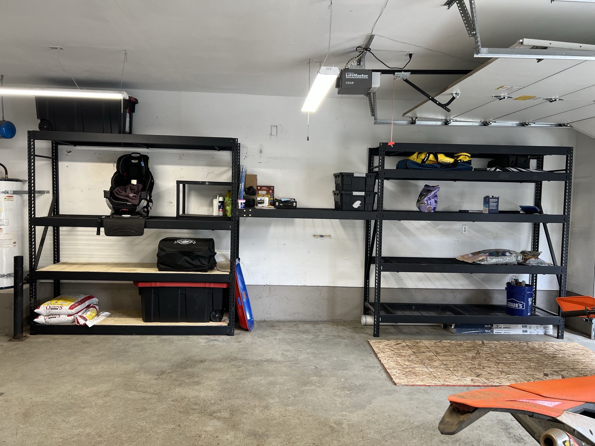 The middle shelf has been cut down in length to fit my garage. Each rack goes for over 500 dollars new and there are 2 of them.