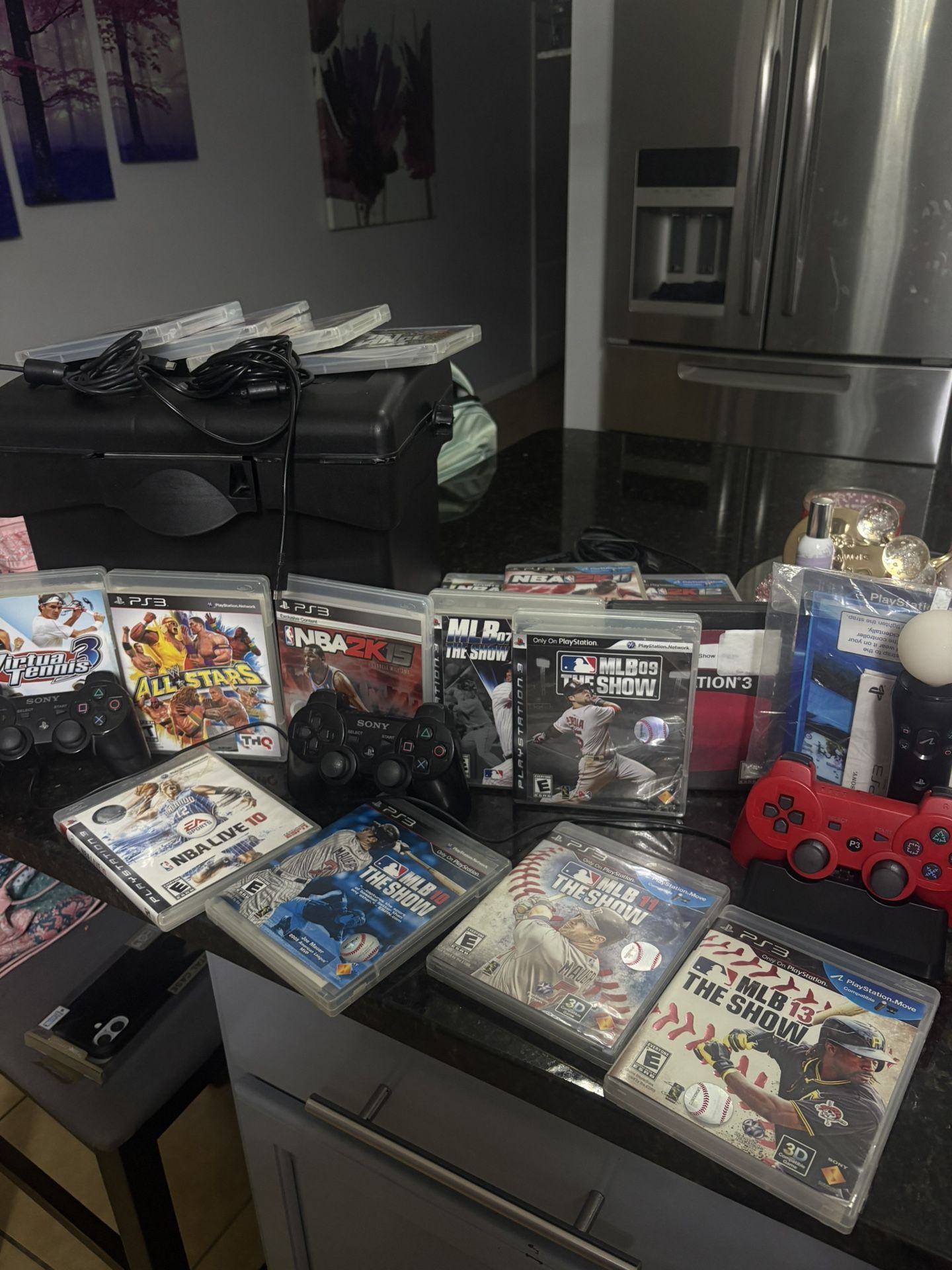 This is a Play Station 3 that comes with 17 PS3 games, and 1 game for PS2, 3 controllers/ 1 Wii, about 3 chargers, a camera, and a storage box for all the games and controllers. The storage box works, but it is old so it’s a little broken in some areas, but works perfectly fine! Again all the things I listed come together, you don’t have to pay for everything separately. If there’s something you don’t want/ need let me know, and I’ll lower the price. The price is negotiable, but best offer gets it.