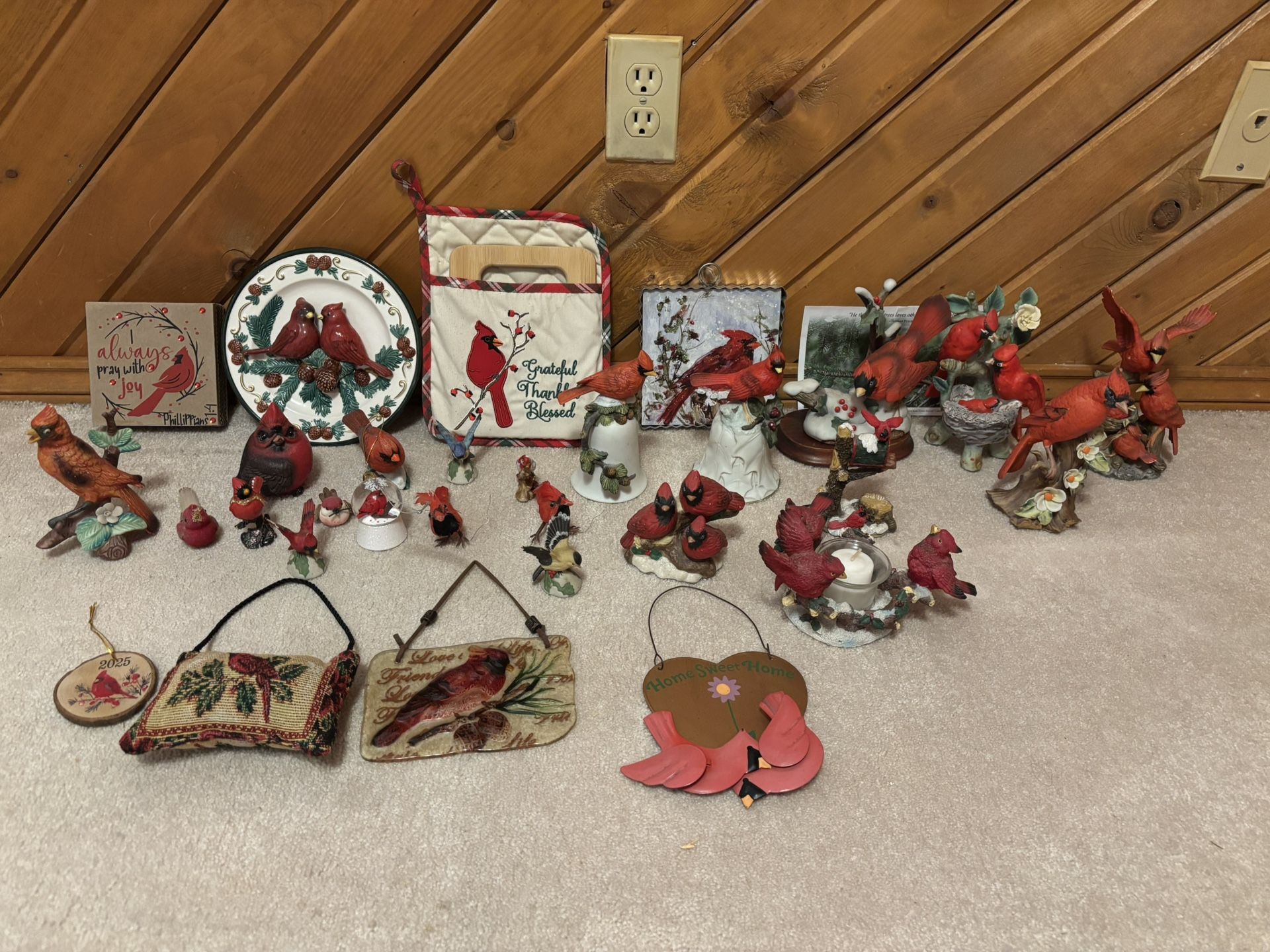 YES THEY ARE AVAILABLE!!! Cardinal red bird lot of over 30 sculptures, wind chime, bells, plaques and more. They were my moms and she is now in assistant living and I have no room for them. No cracks or damage, all were on shelves for over 30 years. $50 for everything in the pictures. Located near 4333 Western Center, 76137. Cash or Venmo only.