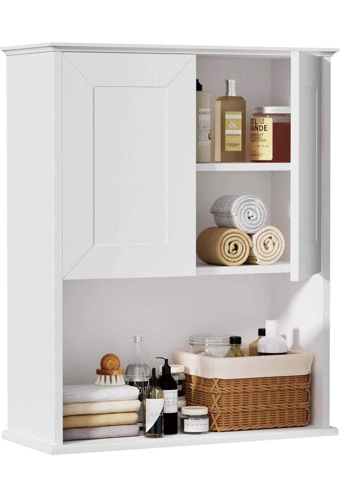 Bathroom Wall Cabinet, 29" x 24"Wood Wall Mounted Medicine Cabinet with 2 Doors & 3 Adjustable Shelves, Hanging Cabinet Over Toilet Storage for Laundr
