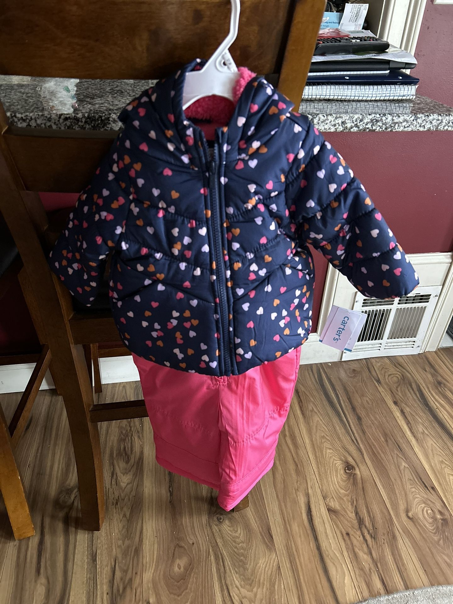 Carters Pink Heart Design Snowsuit Size: 12months Brand New