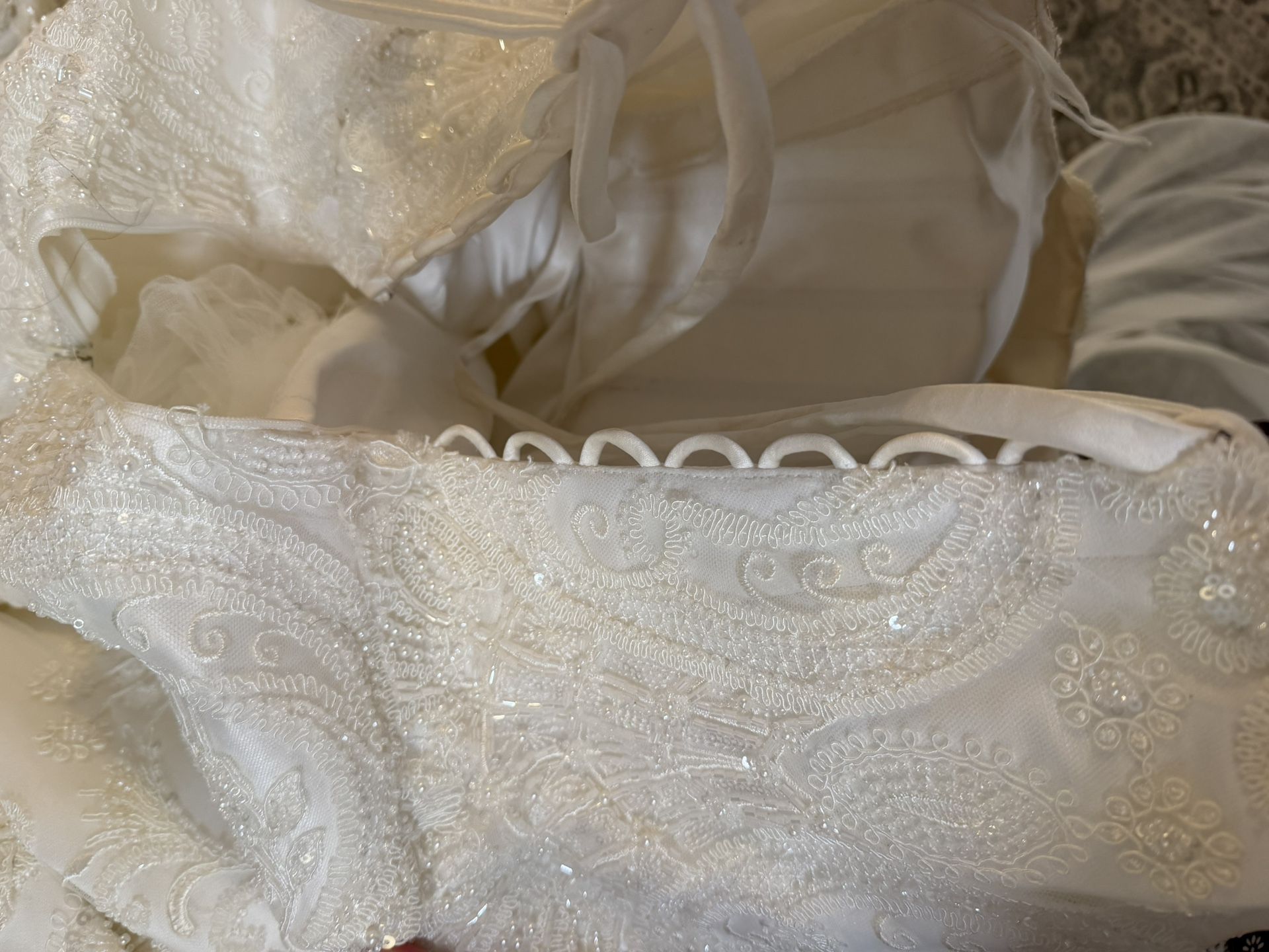 Please message me for the video of the dress if you’re interested, it’s not letting me upload it!! Only ever worn 1 time for 3 hours, very great quality materials, couture made, $6000 original price. Strapless but easily customizable if you wanted to buy it and add straps yourself . Comes with corset back so it fits anyone from size up 10-18 . Asking $2800 or best offer!! If you’re local you’re welcome to come try it