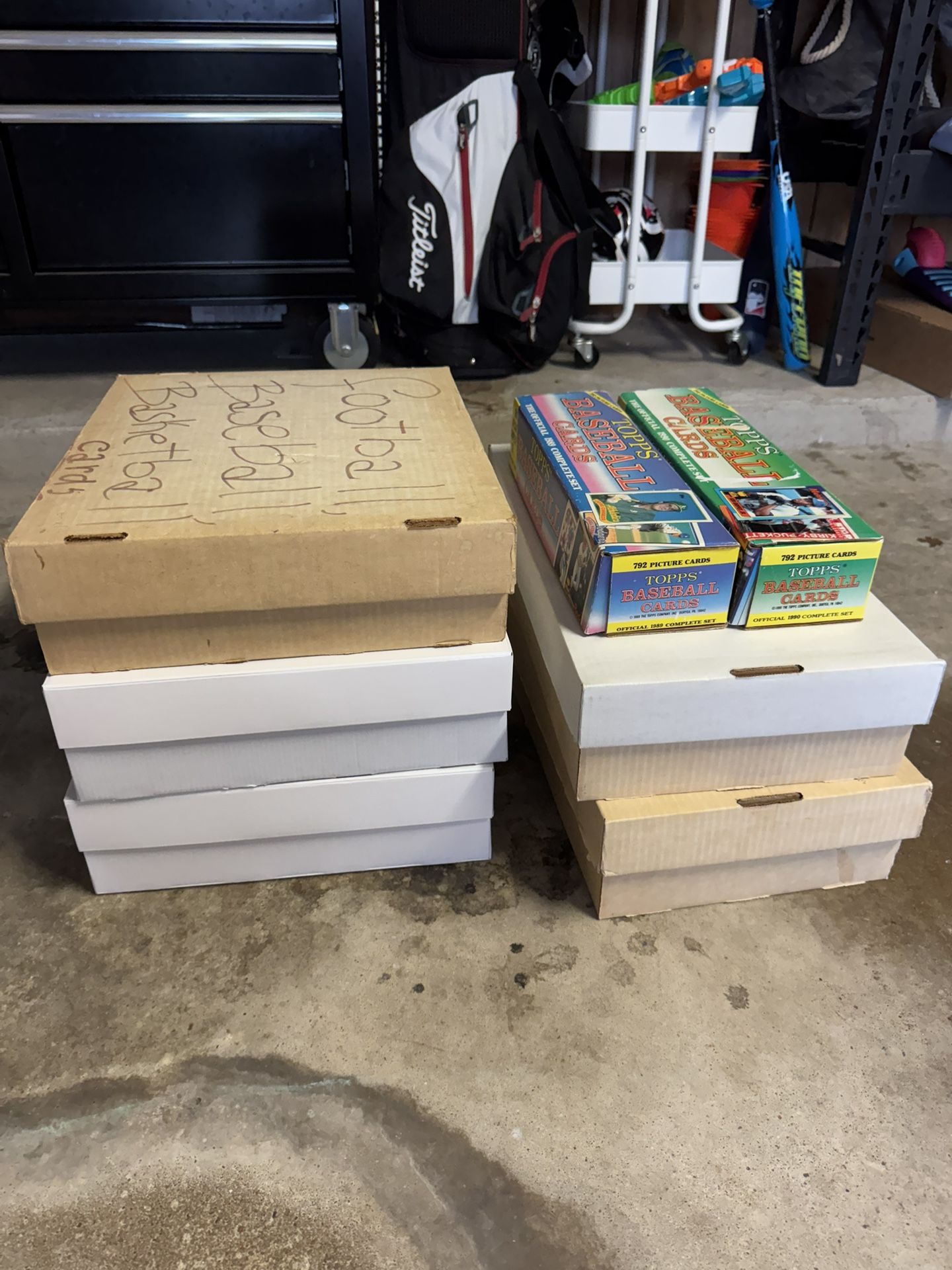 This is a huge, clean, well-organized baseball card collection from the heart of the late-80s / early-90s era. Approximately 15,000 cards total, all sorted by set and boxed carefully. These are not loose junk piles — they’ve been kept organized and are easy to browse, sort, or build sets from. At roughly 1.5 cents per card, this is an excellent opportunity for collectors, dealers, set builders, or anyone looking for bulk inventory. Most cards appear to have been pulled from packs and stored — these are NOT hand-collated sets, and I have not verified completeness, so there may be duplicates and missing cards. That said, the volume and organization make this an ideal lot for assembling full sets, reselling individually, or submitting key cards for grading. Key Sets Included Topps (majority of collection): 1987 Topps 1988 Topps — likely multiple complete sets 1989 Topps — likely multiple complete sets 1990 Topps 1991 Topps 1992 Topps Score: 1990 Score 1989 Score Donruss: 1988 Donruss 1989 Donruss 1990 Donruss Additional Donruss cards across multiple years Fleer: Fleer 1991 Additional Fleer cards across multiple years Bonus Items Included 7 unopened vintage wax packs (1x 1988 Donruss, 4x 1989 Score, 1x Donruss 1992, 1x Leaf 1992, 1x Topps 1993) Slabbed 1989 Mookie Wilson card Original Topps 1989 and 1990 boxes