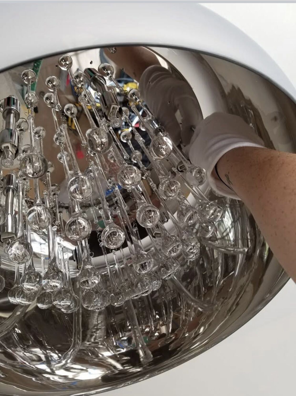 Modern Chandelier. I forgot to take a picture of the chandelier before taking it down. I will try to have someone hold it up while I take a picture. I cannot hold it up and take a picture of it at the same time because it is to heavy for my one hand. Please feel free to text me with any questions. I will post some more pictures as soon as I get some assistance. One of the crystals that hang down is missing. Available for pickup at my home in Oswego, IL Ogden Falls Subdivision. I take Cash or Zelle.