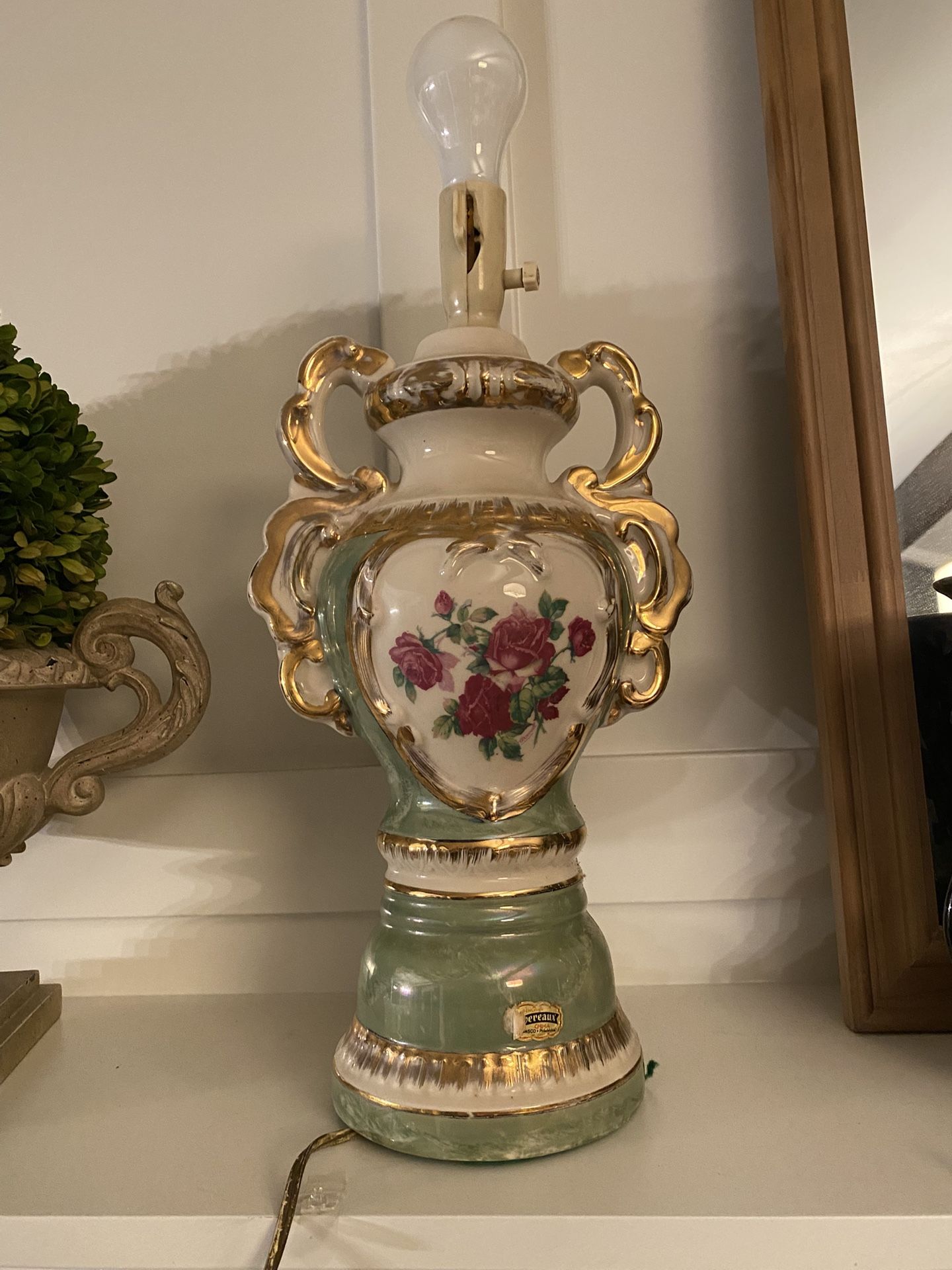Vintage Green Art Deco Style French Ceramic Urn Boudoir Table Lamp