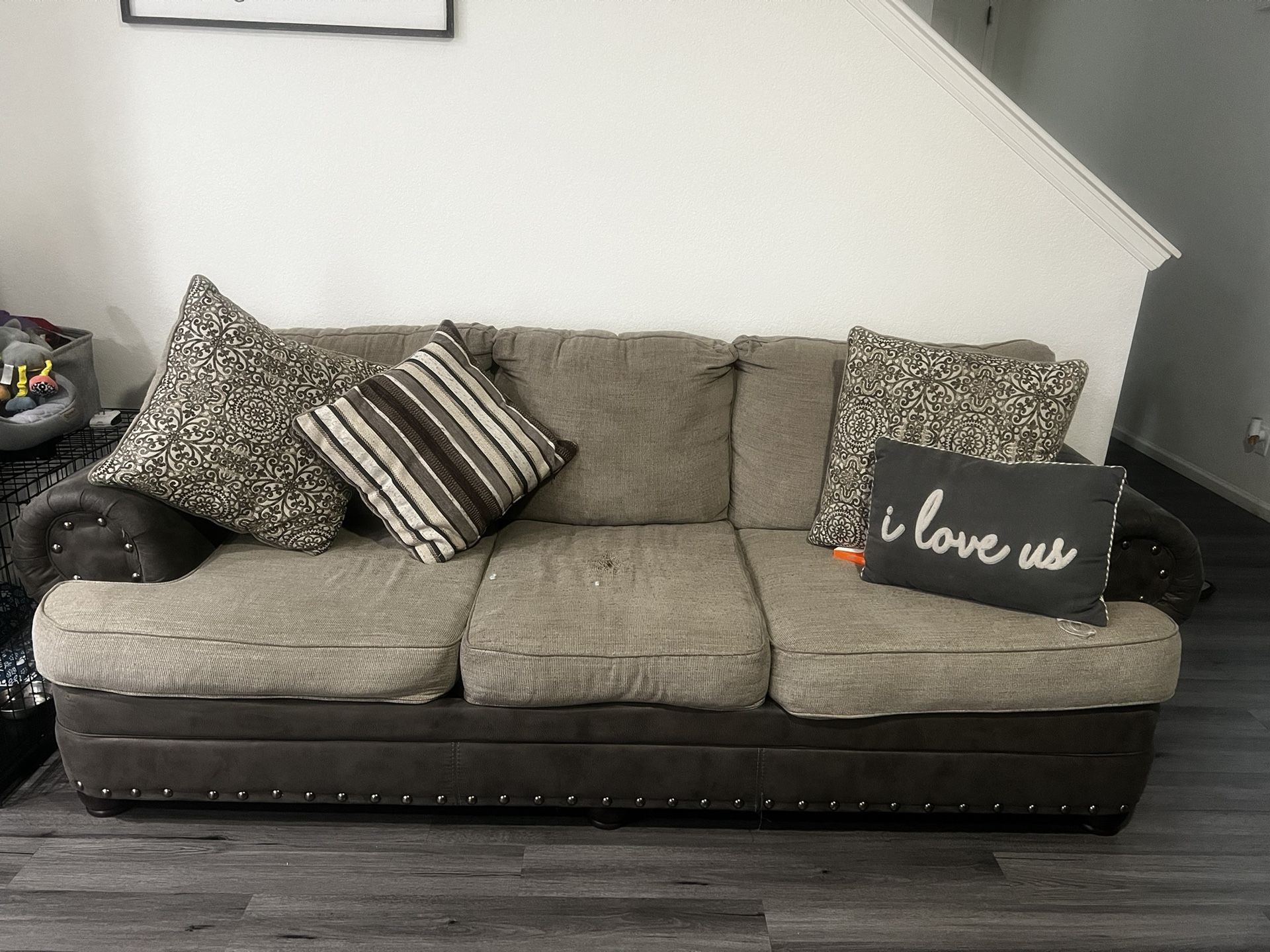 Need to be picked up today. $200 OBO. These couches are in good shape other than the small tear.