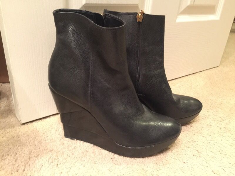 Excellent condition Diane Von Furstenberg black leather wedge booties size 8. Pickup in Yorba Linda or Irvine area.
