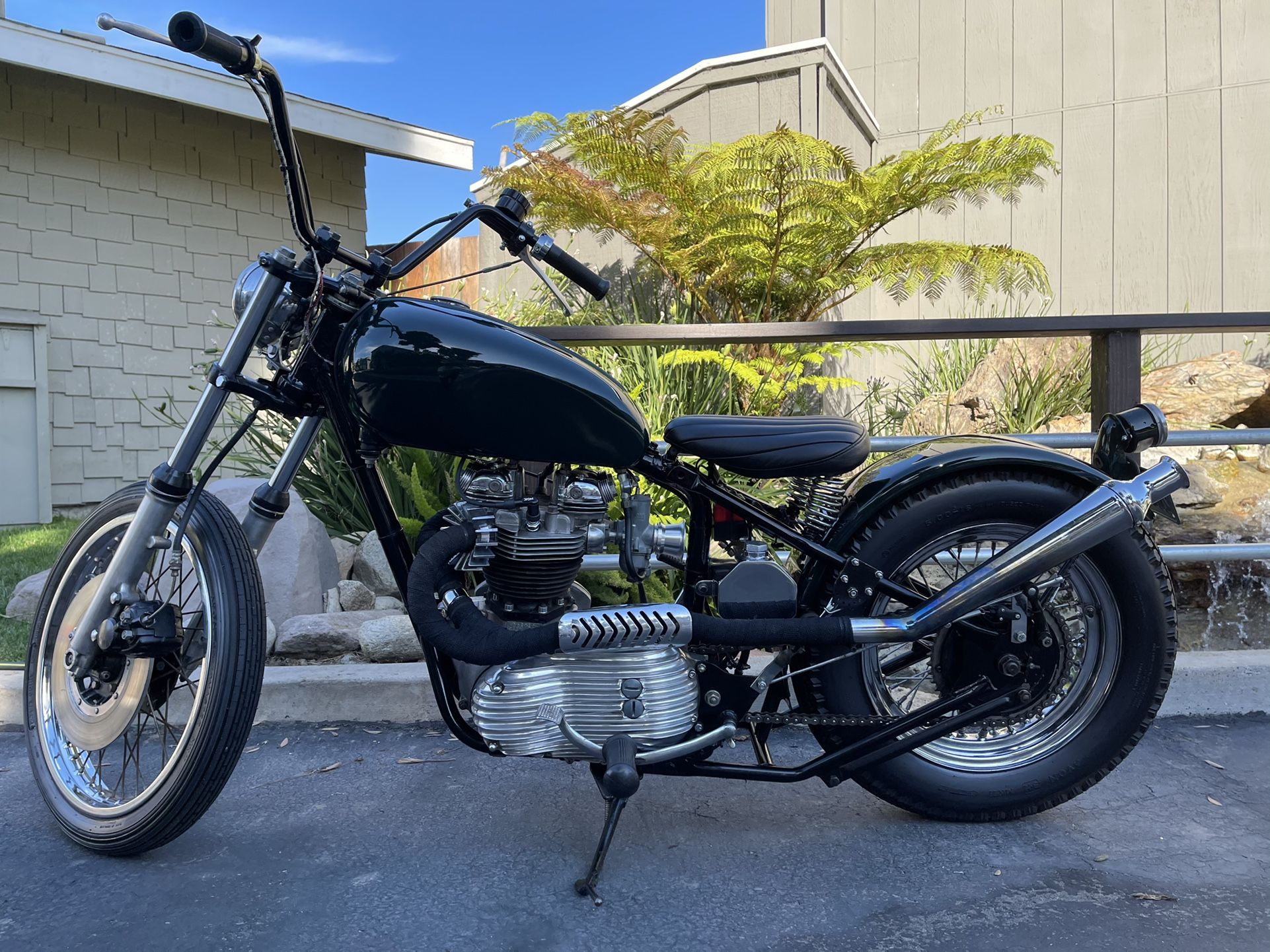 1963 Vintage DU5104 frame, with period correct weld on hard tail. Bike built from the frame up, with many period and custom parts. The frame neck has not been raked. The motor has been gone through completely and is a fresh 1969 TR6C (KD), including performance guts and less than 500 miles on it, it runs amazingly and best on premium gas. It has late 60’s tank, a 1957 TR6 Siamese header pipe, and 60’s MCM muffler with finned header clamps. The front end is from an early 70’s Kawasaki. 1 off custom handlebars and lots of original patina on a recently freshly built, beautiful bike .... And honestly has too many features, extras and upgrades to list here, just enjoy the pictures or come check it out. It’s a serious head-turner. $7500. OBO. And even though rebuilt, it must be stated, it’s still a 50+ year old bike, and purchased as-is with no warranties. Unable to deliver or ship, pick up only