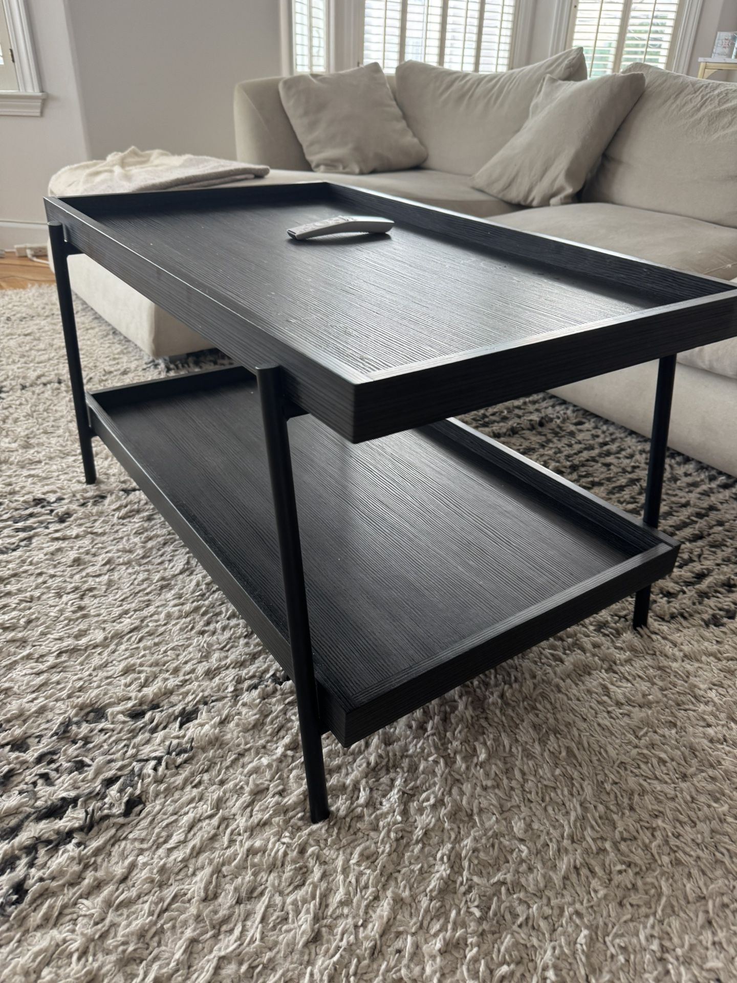 Black coffee table with space at the bottom for any table accessories or items.