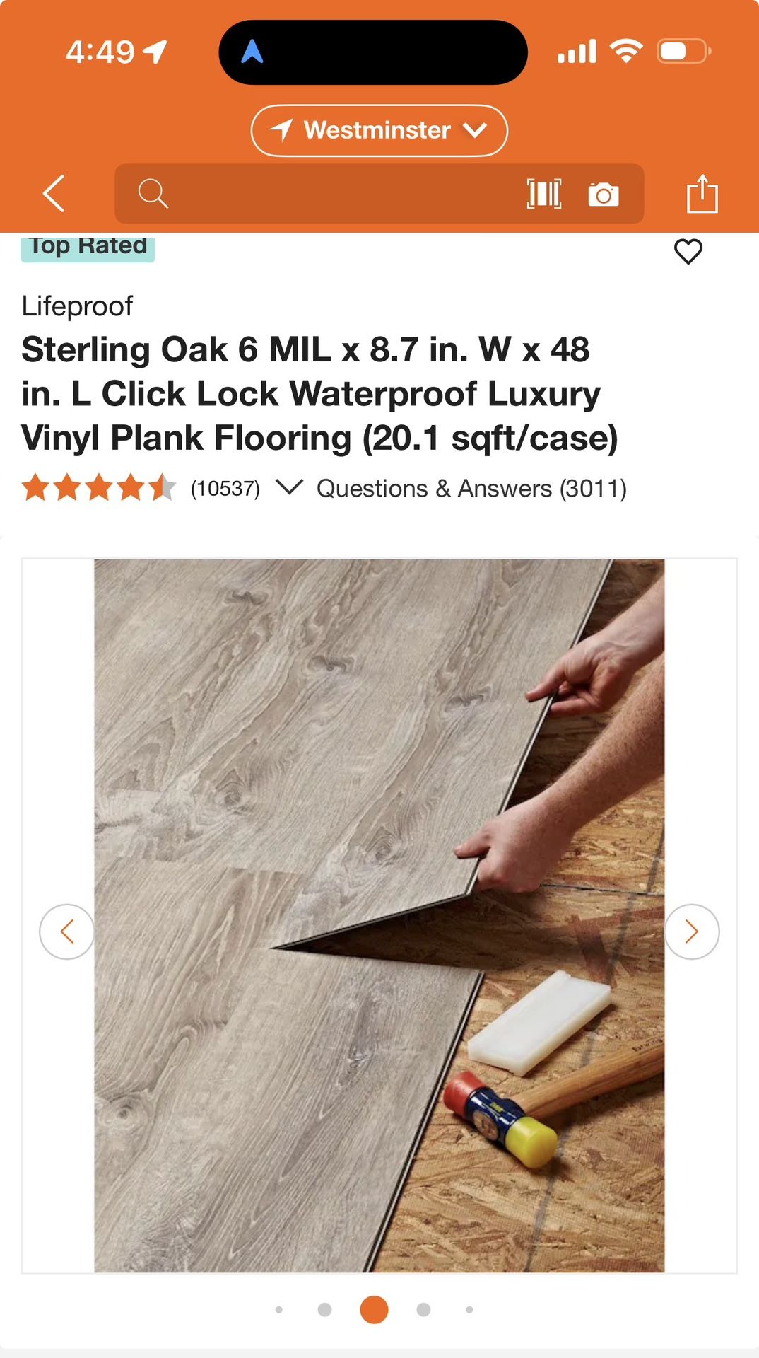 LifeProof Sterling Oak Luxury Vinyl Plank Flooring – Waterproof – Click Lock Brand: LifeProof Color/Style: Sterling Oak Thickness: 6 MIL wear layer Plank Size: 8.7 in. W x 48 in. L Coverage: 20.1 sq ft per case Installation: Click-lock / floating floor Waterproof: Yes Store SKU: 1002-241-524 Condition: Some cases are new and factory sealed, and some cases are opened, but all planks are included and complete. No missing pieces. Details: LifeProof luxury vinyl plank flooring with a realistic oak wood appearance. Waterproof, durable, and scratch-resistant—great for kitchens, bathrooms, basements, and high-traffic areas. Easy DIY installation with click-lock system. Quantity Available: • 7 cases total • 20.1 sq ft per case • Approx. 140.7 sq ft total Price: • $40 per case Local pickup preferred. Message me if you’re interested or want to bundle multiple cases.