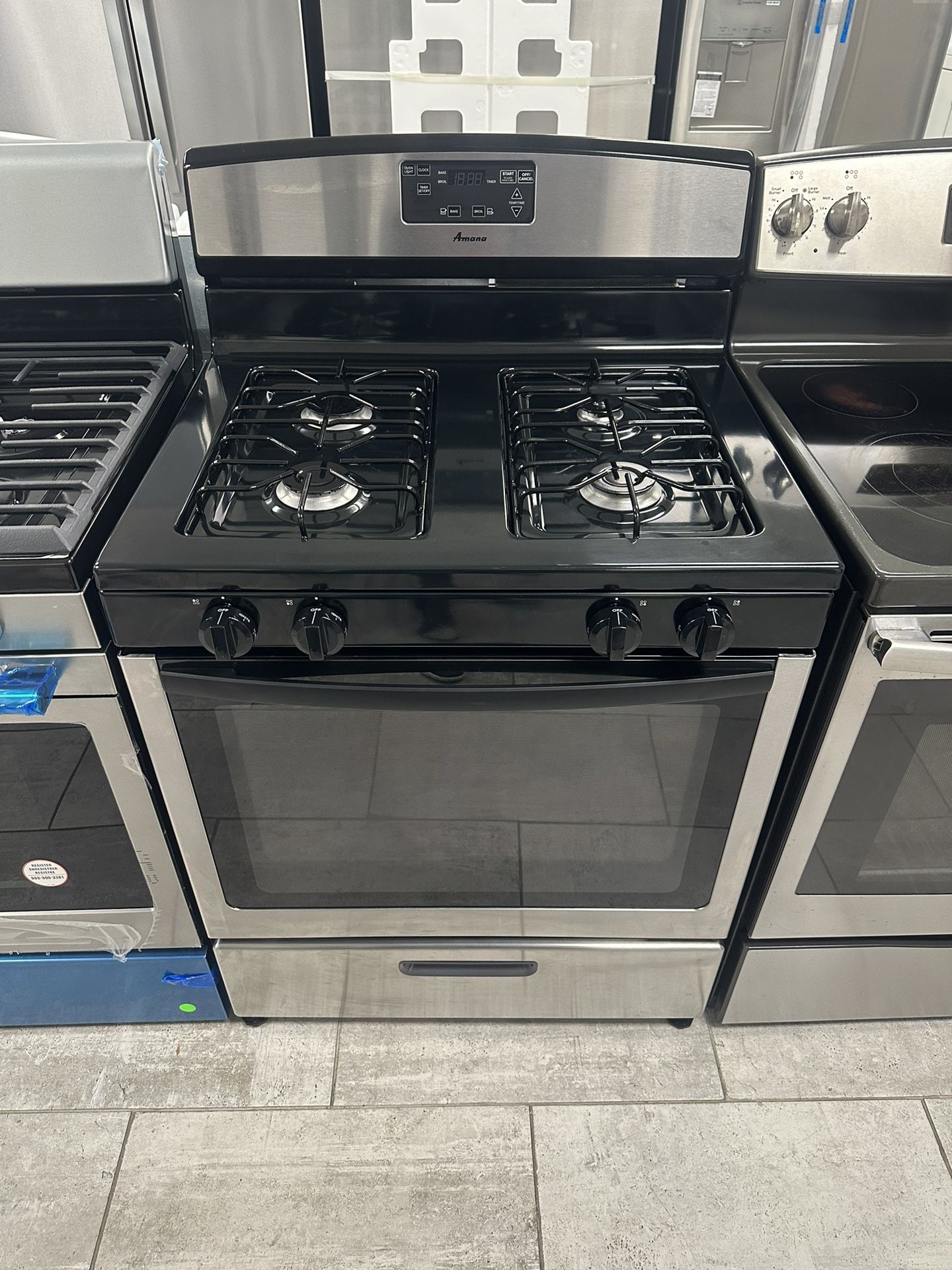 Amana 30 Inch Gas Stove Four Burners Stainless Steel