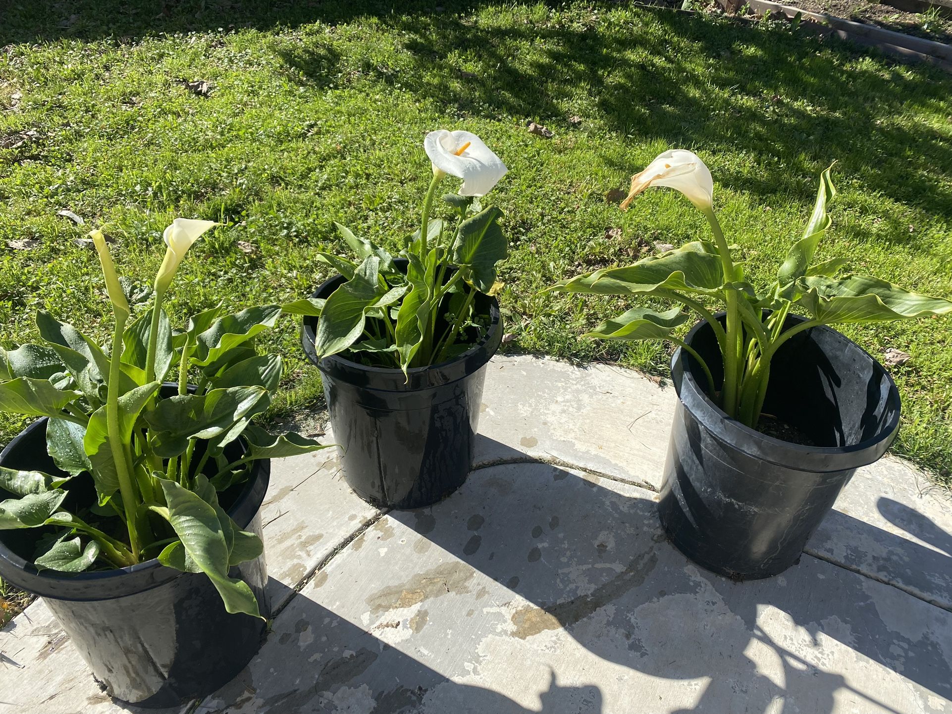 Large white lily in 10 gallon planter, Thrives in Both Full Sun and Partial Shade. Have many, selling each for $65