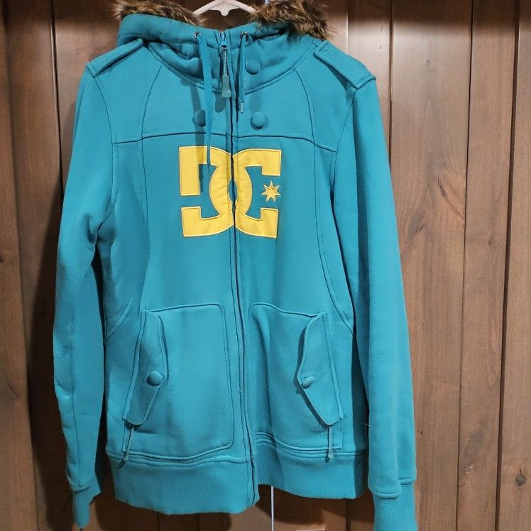 Teal DC Shoe CO. Lined Women's Jacket w/fax Fur Lined Hood Sz M
