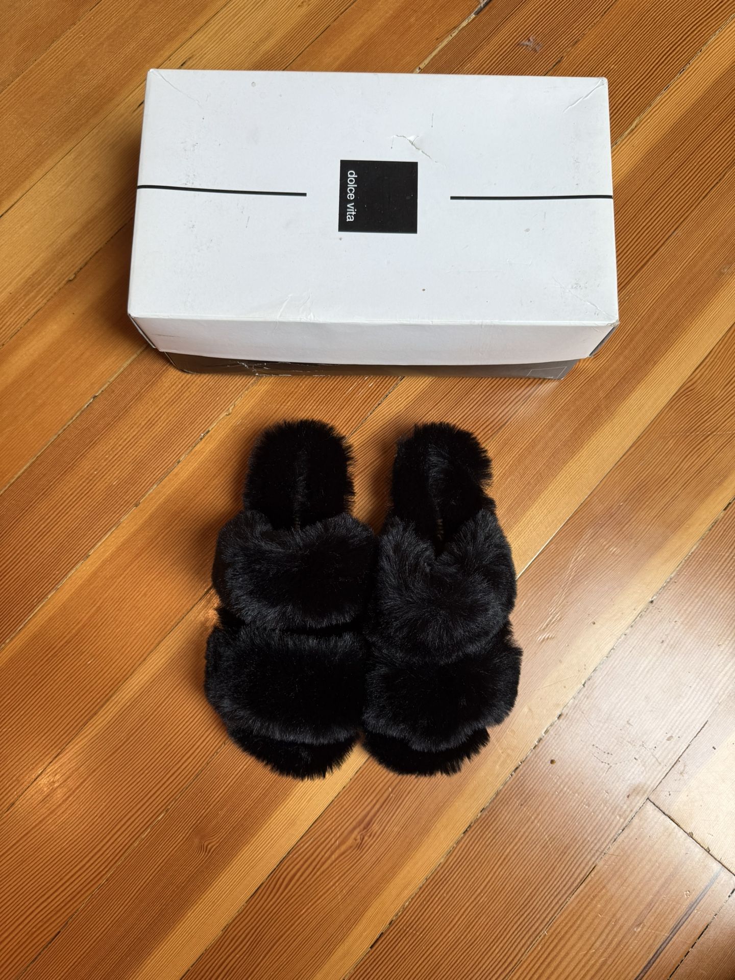 DOLCE VITA Woman, Slipper, Black, Faux Fur Slide Size 6