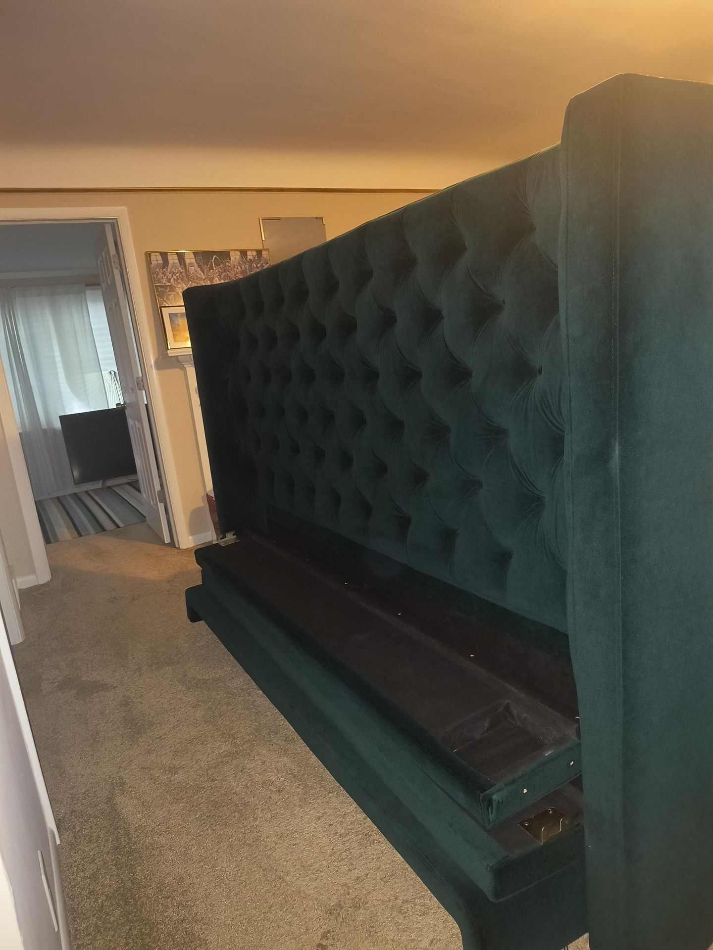 California King Green Velvet High Headboard with Bed Surround