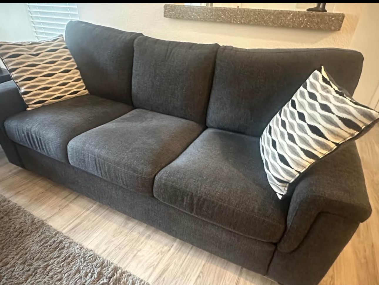 Barely used only had for a month gray loveseat and couch still clean and fresh like new! Bought for almost 1k. Cannot deliver, easy to take apart and store in a truck. Nothing wrong with it, just found a bigger one. 500 obo need gone by this weekend!