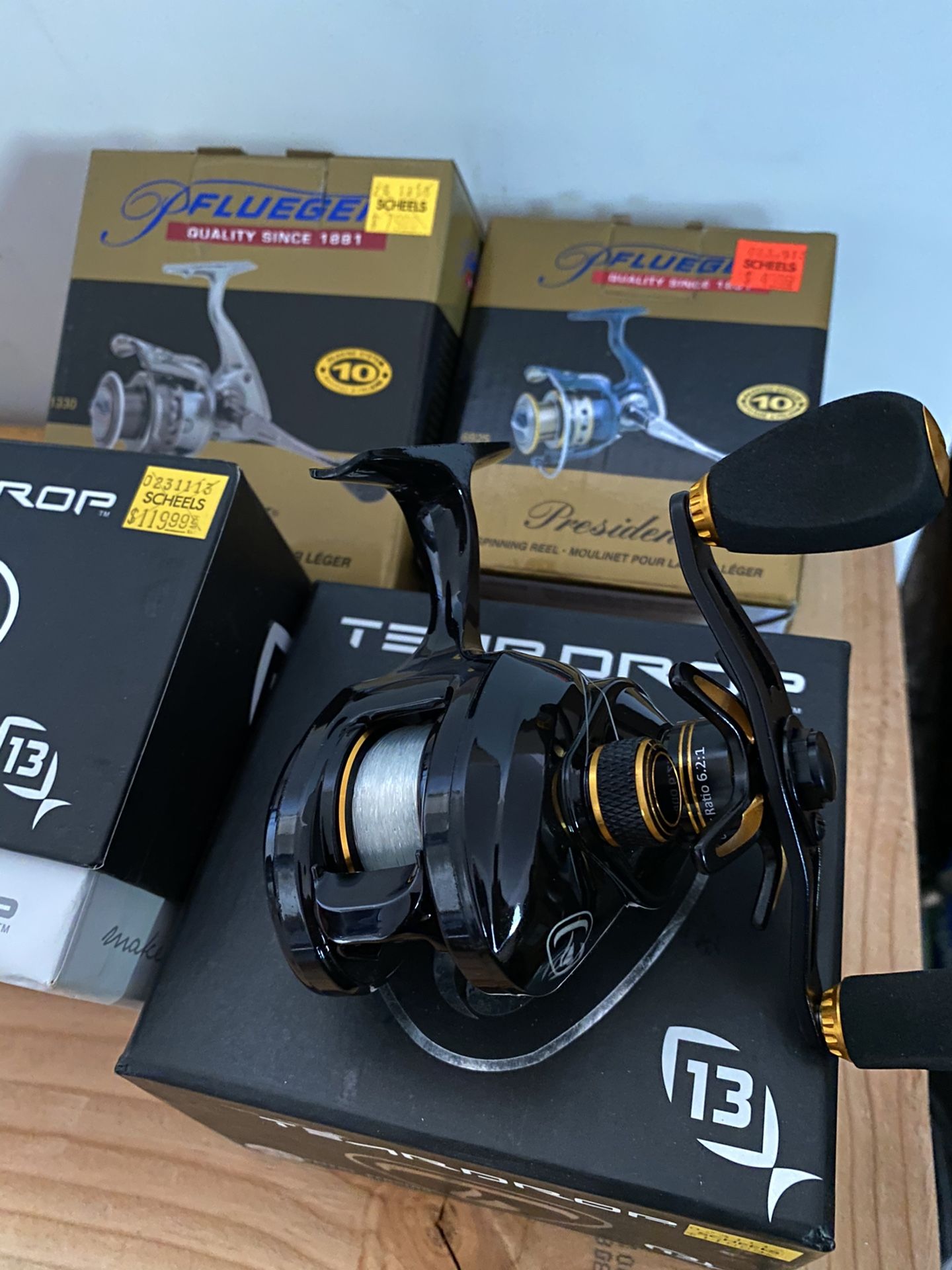 NO INDIVIDUAL SALES. I WILL NOT RESPOND. MUST BUY ALL. Brand New. Fishing Gear. 4 Bait Reels. 2-Bait Caster (13 Fishing Teardrop) and 2-Spinning reels(Pflueger). All brand new. Never used. Bought at a Scheels and never used them. Tags are still on them. Selling them all. No individual sells. Price will increase if sold individually.