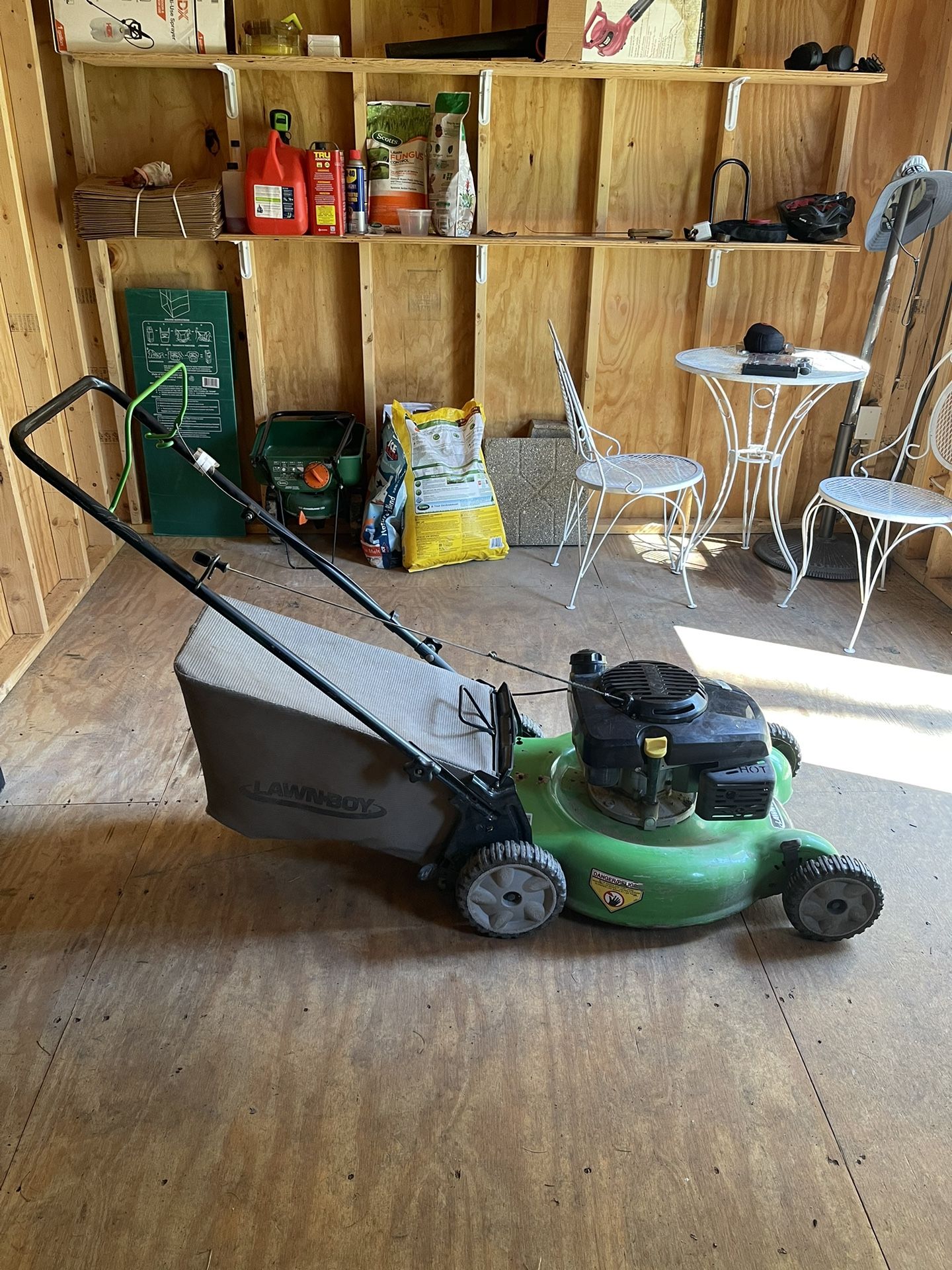 Lawnboy push mower for sale, in working order, original owner. Well maintained and cared for during winter months. Needs a little TLC after being winterized last season. 20 in. High Wheel Push Gas Lawn Mower with Kohler Engine (CARB Compliant). • 20 in. steel deck with tri-cut blade • Lightweight and maneuverable high wheel push mower • 2-point height-of-cut, you can easily adjust the deck height at 2-points for quick customization of your mowing height • Larger bag capacity when you need to bag your clippings, this larger bag fills easily • 7 in. front and 11 in. rear wheels provide solid traction to maneuver around all type of terrain • Holds more clippings and allows you to empty the bag faster and less often • Size: 20 in. • Dimension: 57.2 x 22.3