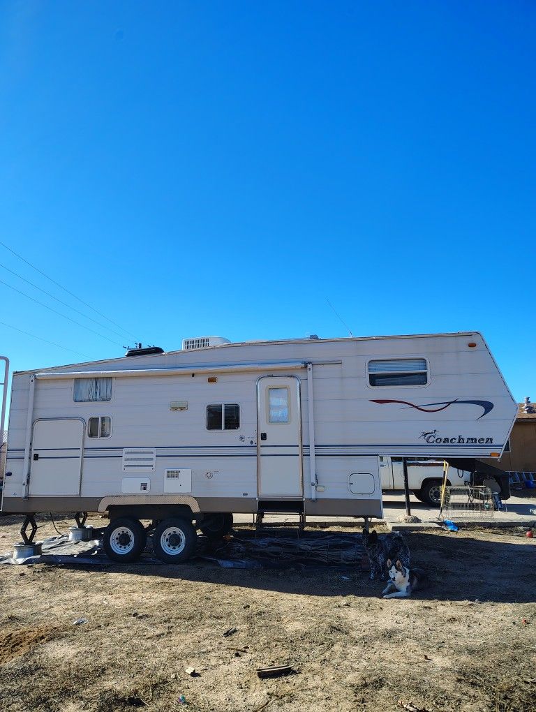 26ft Coachmen Cascade 525tbs. Furnace, AC, water heater, stove, fridge, microwave, all function perfect. Full bathroom with tub, shower and vent fan. Sleeps 6 with fold outs. TV with surround sound and Sony sound system. Slight hail damage on front side, and warped trim on 2 windows. No leaks or issues, slide out motor, and jack motor work perfect. Good tires and all exterior lighting works. Give me an offer.