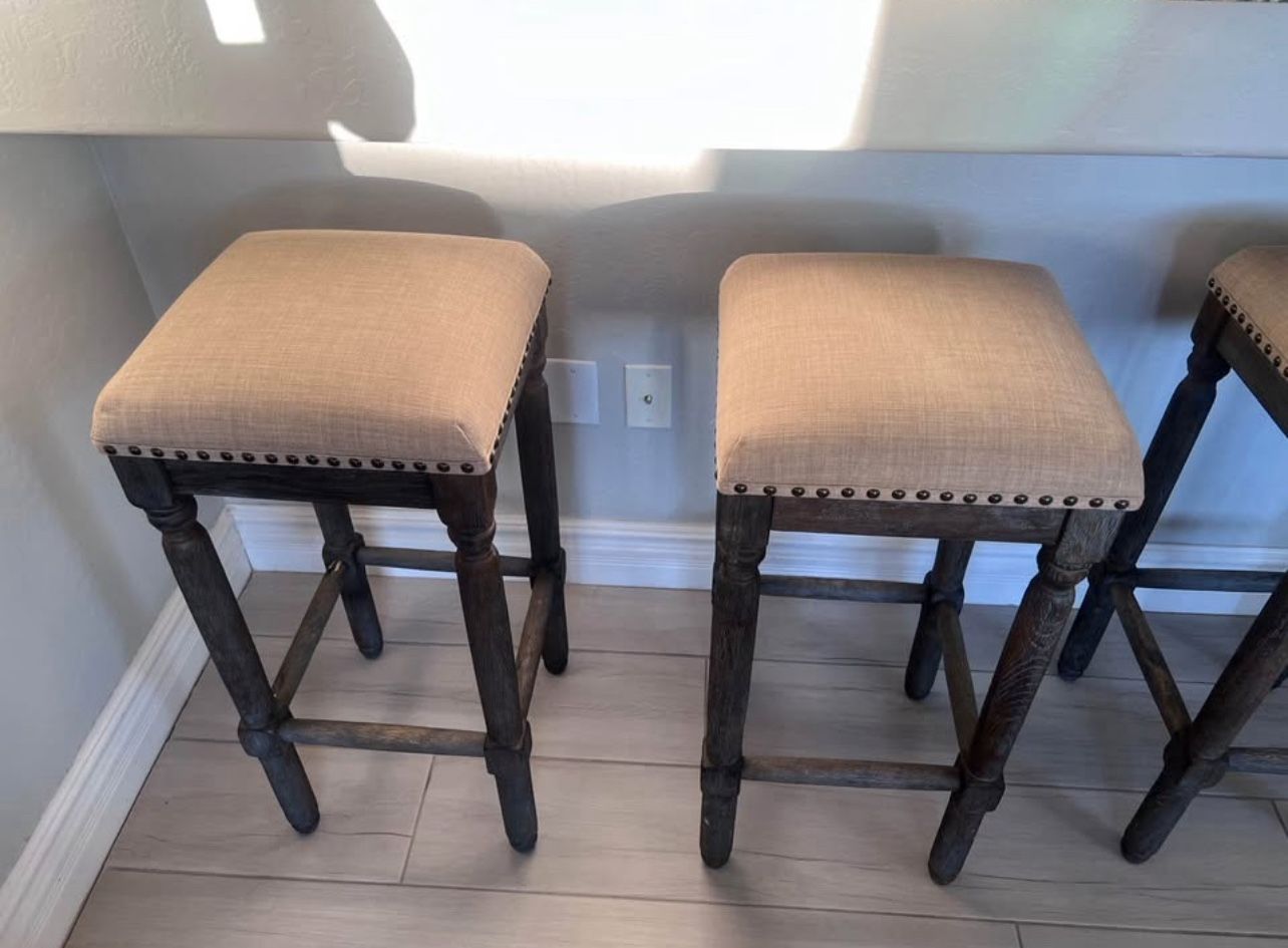 4xbar height stool . 30” high . Like new no stains. Small chip on on of the stools. Located in Suprise.