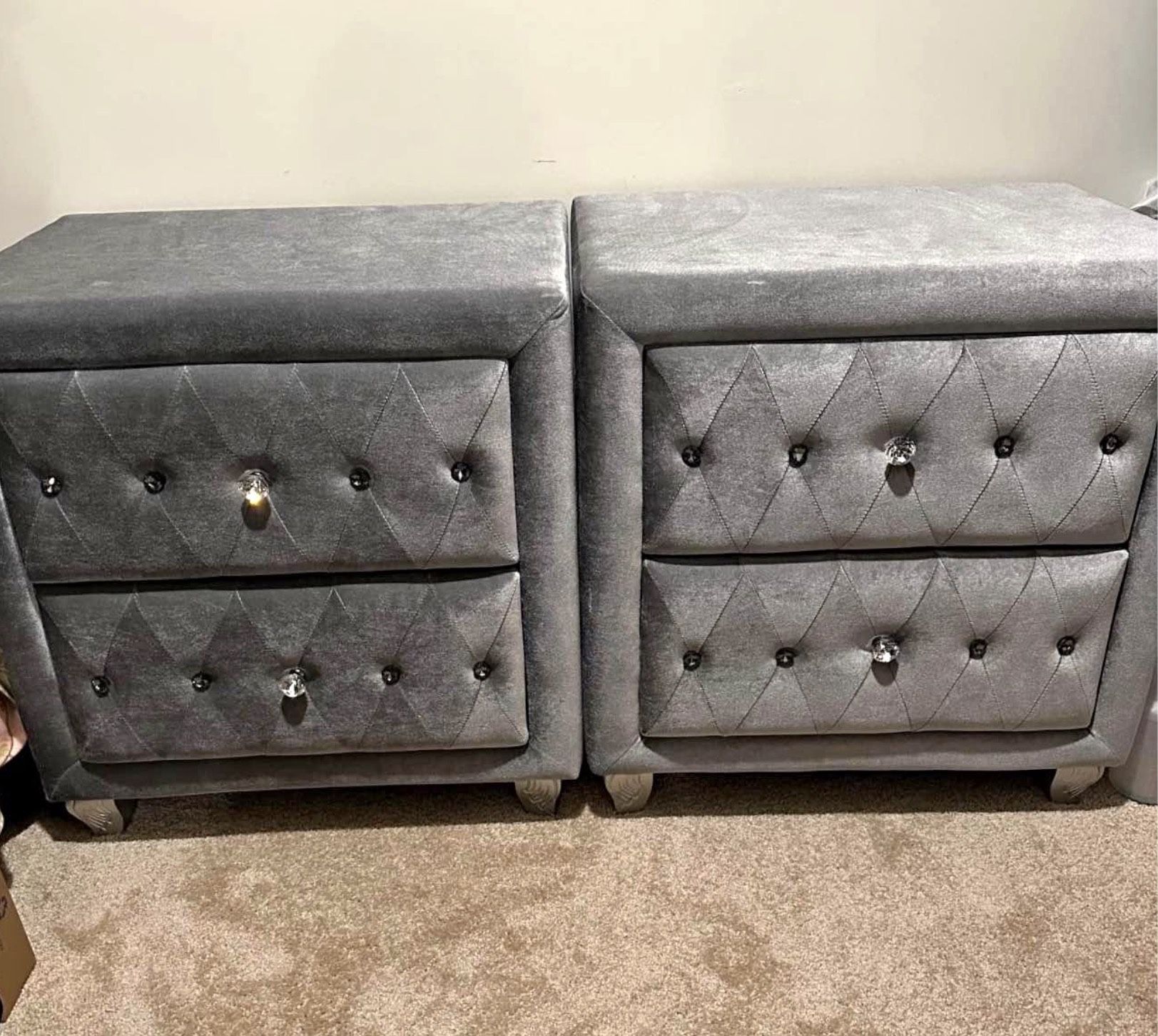 GREY upholstered 2 Drawer NIGHTSTANDS