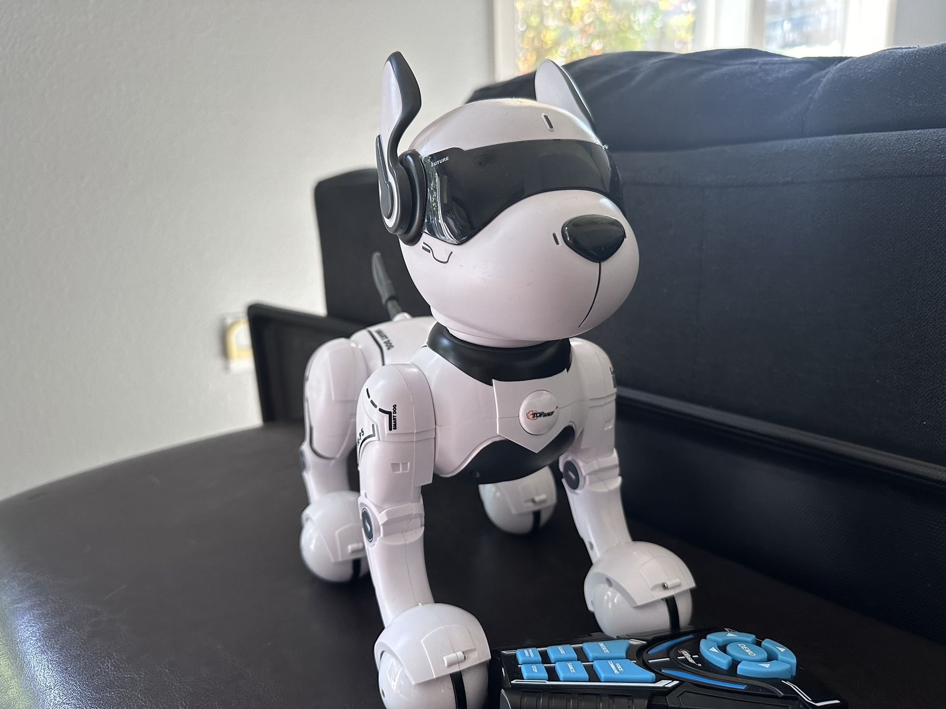 Great condition! Has remote and charger. Smart interactive puppy that responds to voice command.