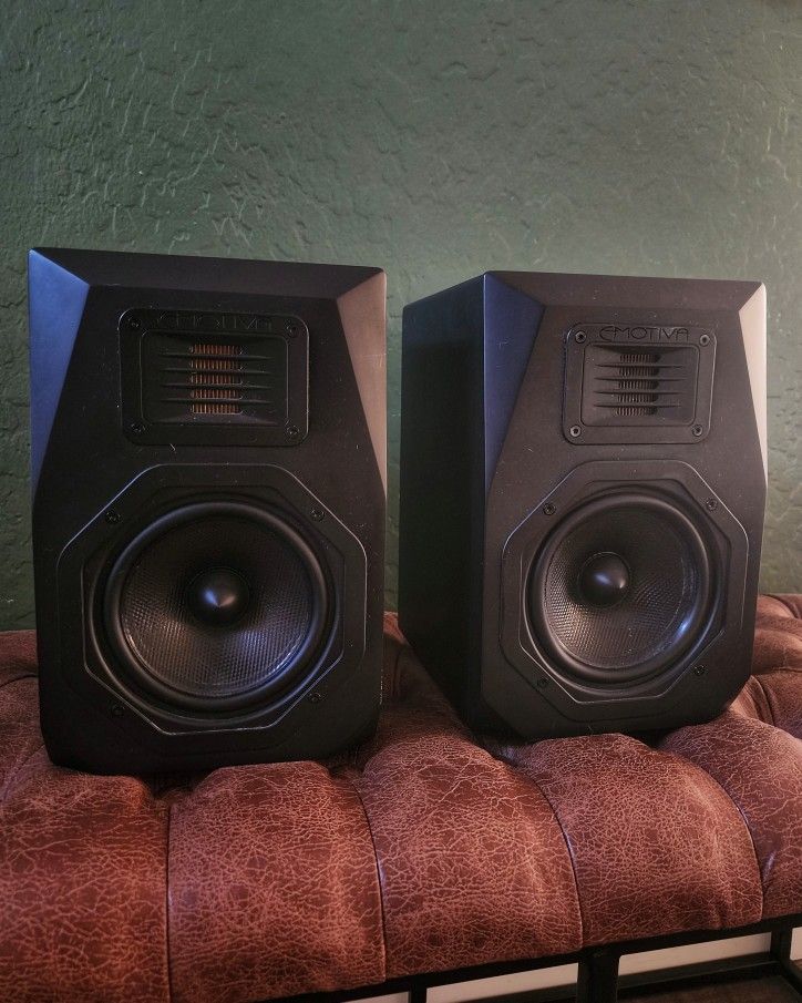 Selling a pair of Emotiva Airmotiv 5s powered bookshelf speakers in good condition. These high-performance studio monitors deliver exceptional clarity, detailed highs, and surprising bass for their size, perfect for audiophiles on a budget. Key Specs: Type: 2-way powered bookshelf speakers Tweeter: 25x32mm Airmotiv folded ribbon tweeter for crisp, airy highs Woofer: 5.25" woven fiber cone for tight, accurate bass Amplification: Built-in 50W RMS per speaker (Class A/B) Frequency Response: 50 Hz - 27 kHz (+3/-3 dB) Inputs: Balanced XLR/TRS combo, unbalanced RCA Sensitivity: 86 dB Dimensions: 11.6" H 7.1x" W x 8.8" D (each) Condition: Fully functional with minor cosmetic wear (small scuffs on one speaker, barely noticeable). No issues with sound quality or electronics. Includes power cords; original boxes not included. Tested and sounding fantastic with my setup. No grills. Major cross streets are Crismon and Baseline. Cash in person only. Firm