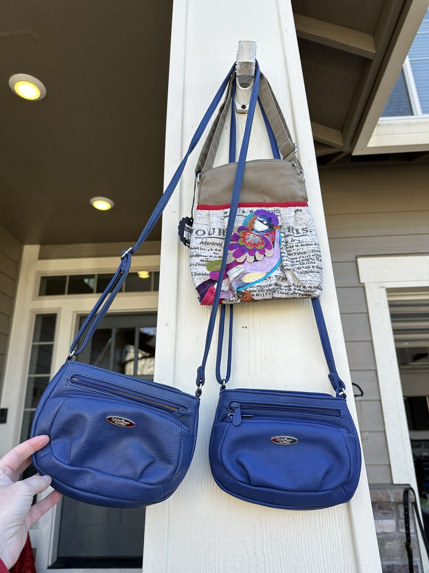 Brand new, never used 2 are small - brand is multi sac and has lots of pockets 1 is a pier one handbag, with the bird being embroidered No damage, stains and nothing wrong with them. All 3 for $25