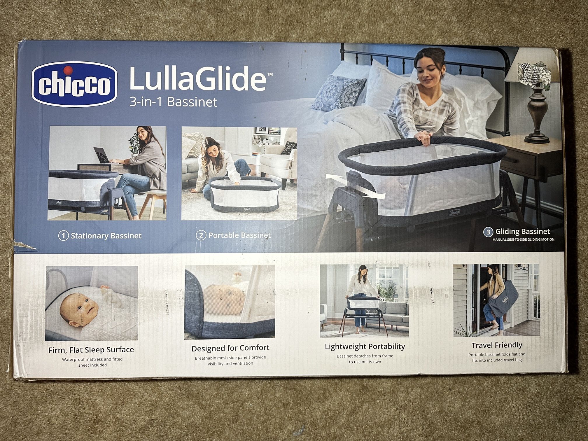 Brand New I have 2 available Message me for any questions Key Details: • 3 versatile modes: stationary bassinet, gliding bassinet and portable bassinet • A gentle push soothes baby with a calming side-to-side gliding motion • Bassinet locks into its stand for stationary sleeping option • Portable bassinet detaches from stand to use on its own • Provides a firm, flat sleep surface • Mesh side panels provide optimal visibility and ventilation • Waterproof mattress with included fitted sheet • Wood-grain finish legs • Lightweight design • Flat-fold, travel-friendly portable bassinet • Convenient carry bag • Space-saving footprint • GREENGUARD Gold Certified for low chemical emissions, contributing to healthier air quality around baby • The Luna fashion features charcoal grey woven mélange fabric and a warm oak wood-grain finish for a combination that makes looking classy feel casual.
