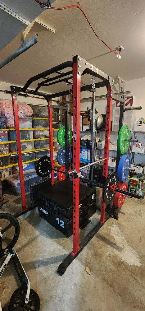 Complete weight lifting system. Includes 45lb bar, weight locks and a full set of weights (A pair each of 2.5, 5, 10, 25, 45, and 55lb weights). The whole set was barely used at all so it's in excellent condition. Asking $2,200 OBO.