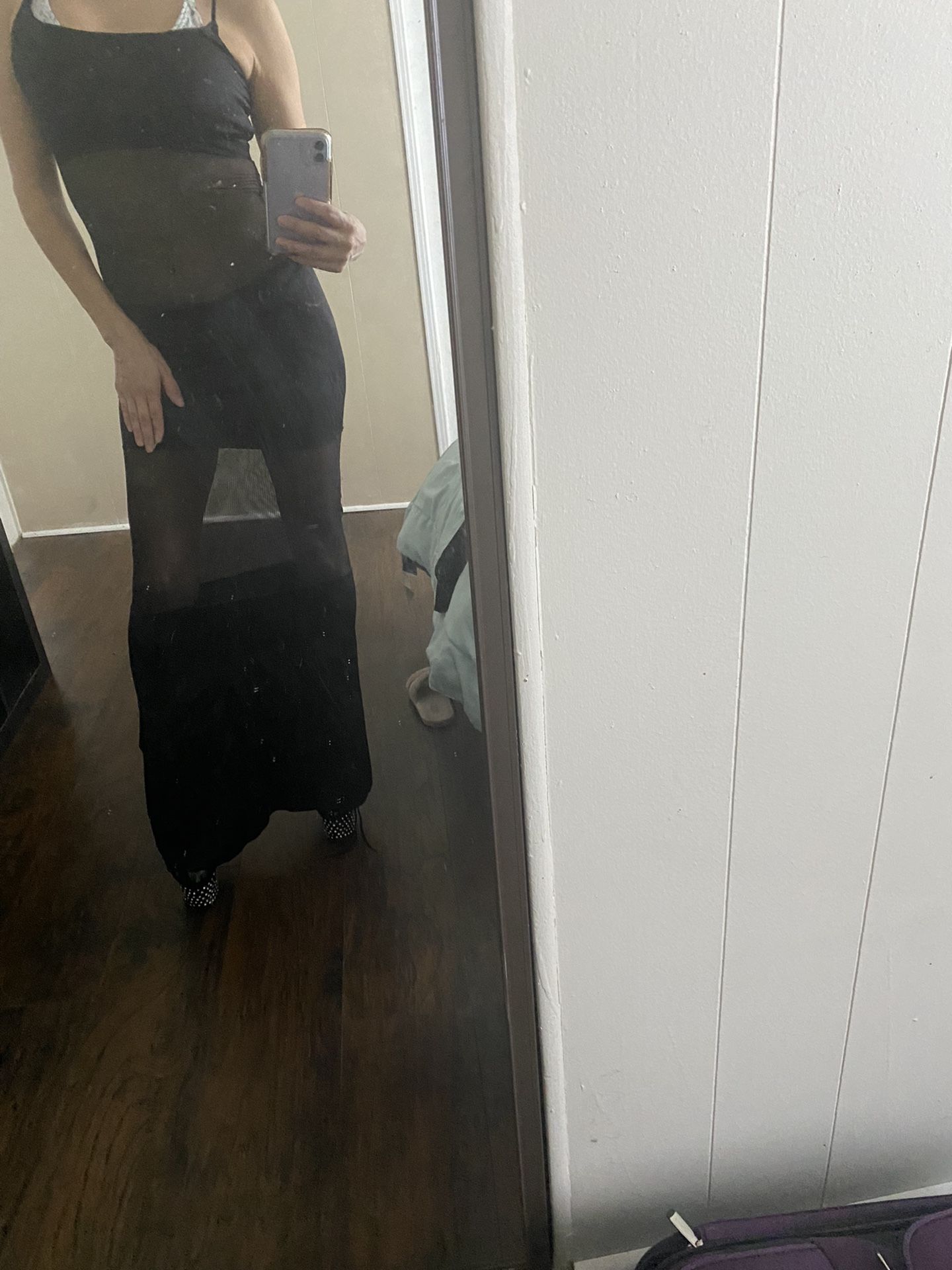 This gown is a solid and mesh gown it is coming out at the seems, Spaghetti strap one size fits most paid $95 asking for $25 will ship out if need be