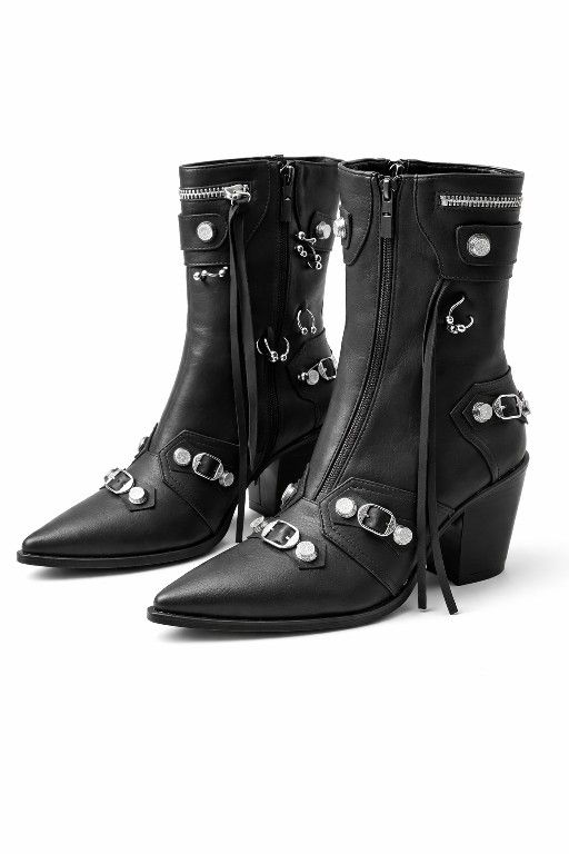 Women’s Size 11 Black Leather Biker Ankle Boots – Silver Hardware