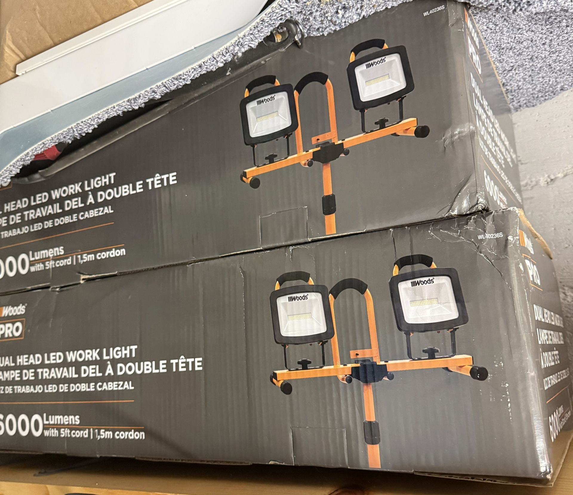 2 brand new in box never opened. Woods 6000 -Lumens LED Plug-in Portable Work Light $65 EACH