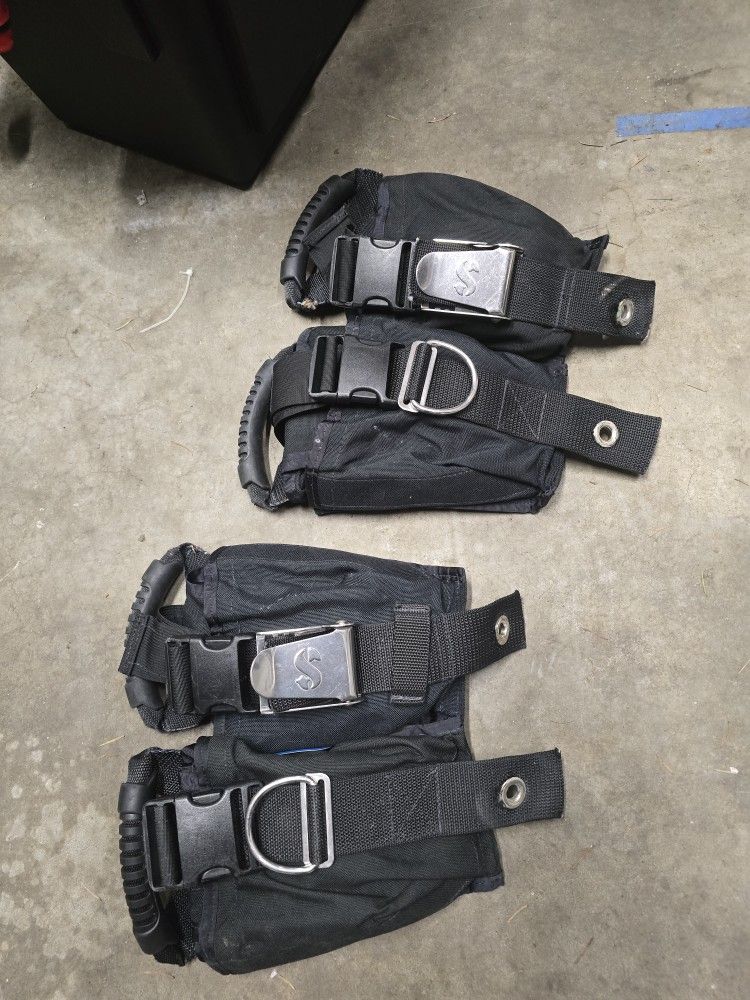 Feeling the squeeze and a bit chilly in your drysuit and wish you had more weight to take advantage of all that sweet midlayer insulation while scuba diving? Look no further than the Halcyon ACB 20. No longer being made in this size, each ditchable weight pocket officially holds up to 10 lbs (though you can definitely squeeze in more). There's no denying that these are used, as there is visible fraying in spots, but they are structurally sound and have years of dives left in them. I have two sets, so if you'd like to buy both we can do a combo deal. Listing price is for a single set of two.