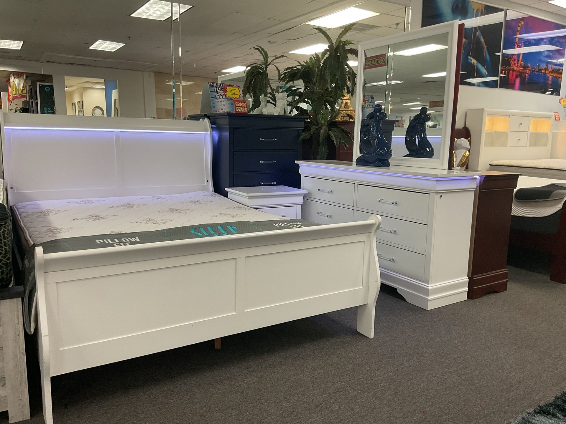 IN BOX FURNITURE SALE BRAND NEW. Modern 5pc bedroom set w/led lights 45% OFF