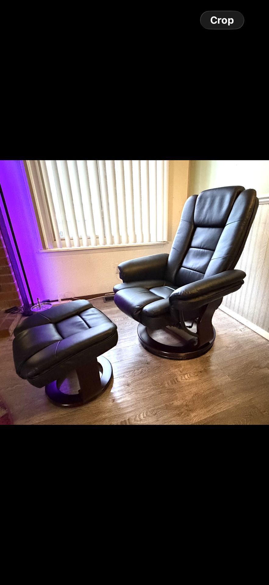 BRAND NEW!!!!!32" Contemporary Leather Recliner and Ottoman with Swiveling Base