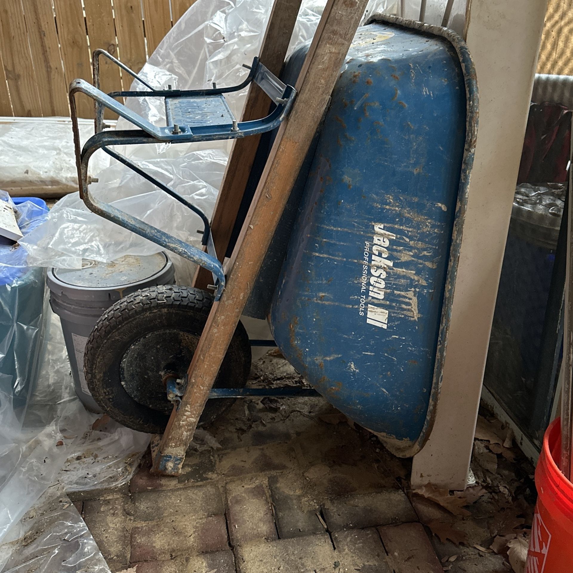 Steel wheelbarrow with hardwood handles. Cash only. First come first serve. You pick up.