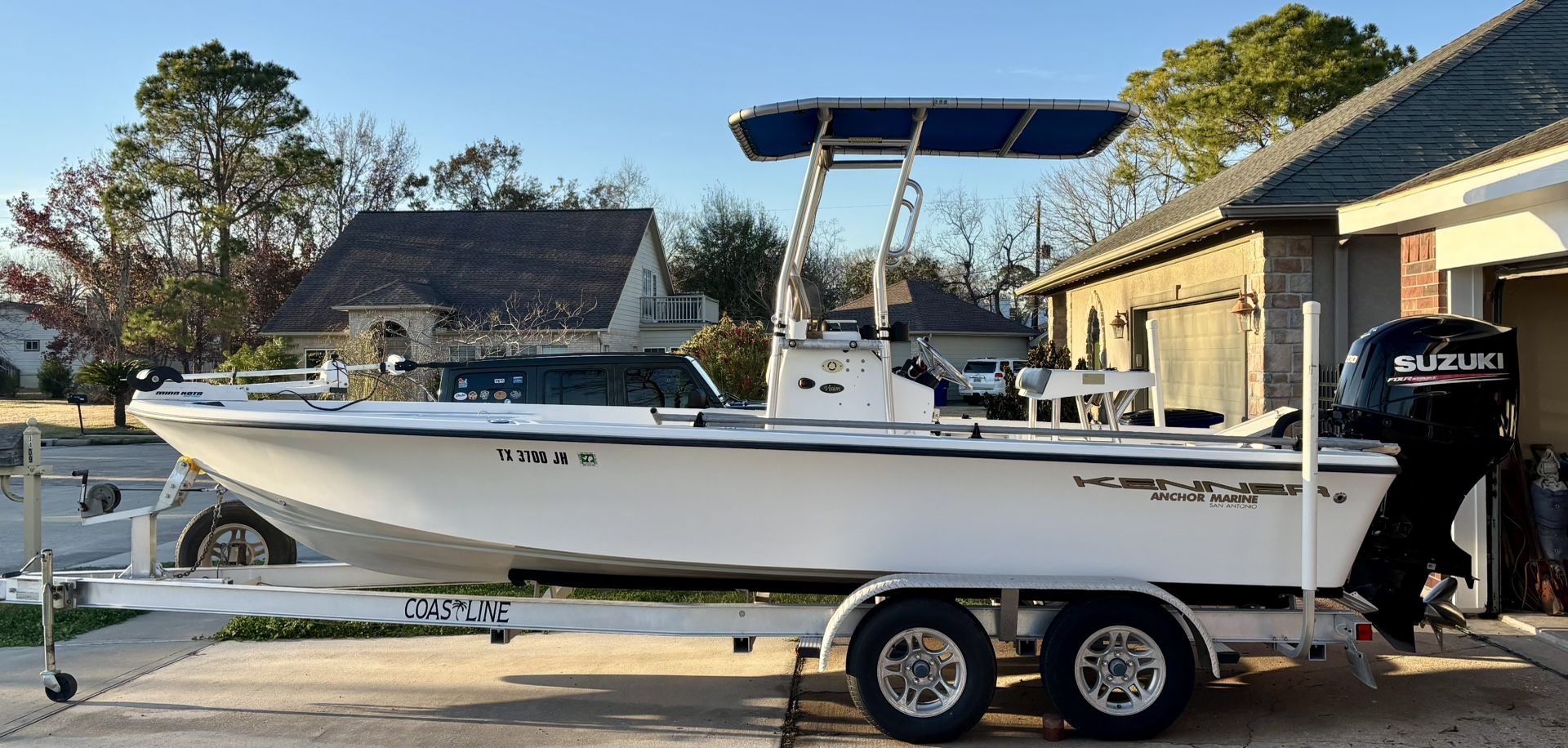2000 22’ Kenner tunnel haul TURN KEY READY 2017 Suzuki 200 four stroke 25 hours on motor Services data sheet provided from 8/2025 Tune up 8/2025 2012 Coast line trailer with no rust good tires Front and back live wells with new lights Fish box Pro Mariner 2 bank charger for trolling motor batteries 2 New batteries for trolling motor 10/2025 Solar battery charger for 2 starter batteries new New Garmin Echomap 7” with transducer New fuse and ground block New blue interior lights around console New ladder 7 offshore life vest Throw cousin Paddle 2 bumpers New anchor New trim tabs Power lift jack plat 24” Blue tooth speaker
