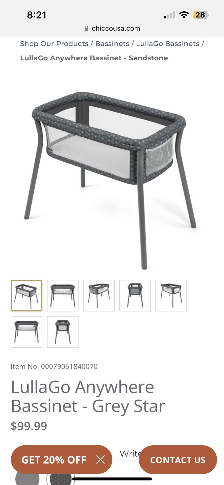 Not too big, not too small, LullaGo® Anywhere is just the right size bassinet for your newborn’s first months. Weighing only 12 pounds, its lightweight design, compact footprint and convenient carry bag provide restful sleep at home and away. LullaGo® Anywhere features a streamlined design with a firm, flat sleep surface and mesh side panels for visibility and airflow. The waterproof mattress includes a bonus fitted sheet and the bassinet fabrics zip-off for easy machine washing. A mesh storage pocket keeps little essentials conveniently close. Sturdy metal legs snap on in seconds for easy setup. LullaGo® Anywhere folds flat and fits inside the included carry bag for effortless travel and storage. The LullaGo® Anywhere is GREENGUARD Gold Certified, meaning it is independently tested for low chemical emissions, contributing to healthier air quality around baby. Firm, flat sleep surface Ultra-lightweight design Flat fold and convenient carry bag Waterproof mattress Bonus fitted sheet Zip-off, machine washable fabrics Space-saving footprint Mesh side panels for visibility and airflow Metal snap-on legs for fast setup Mesh storage pocket