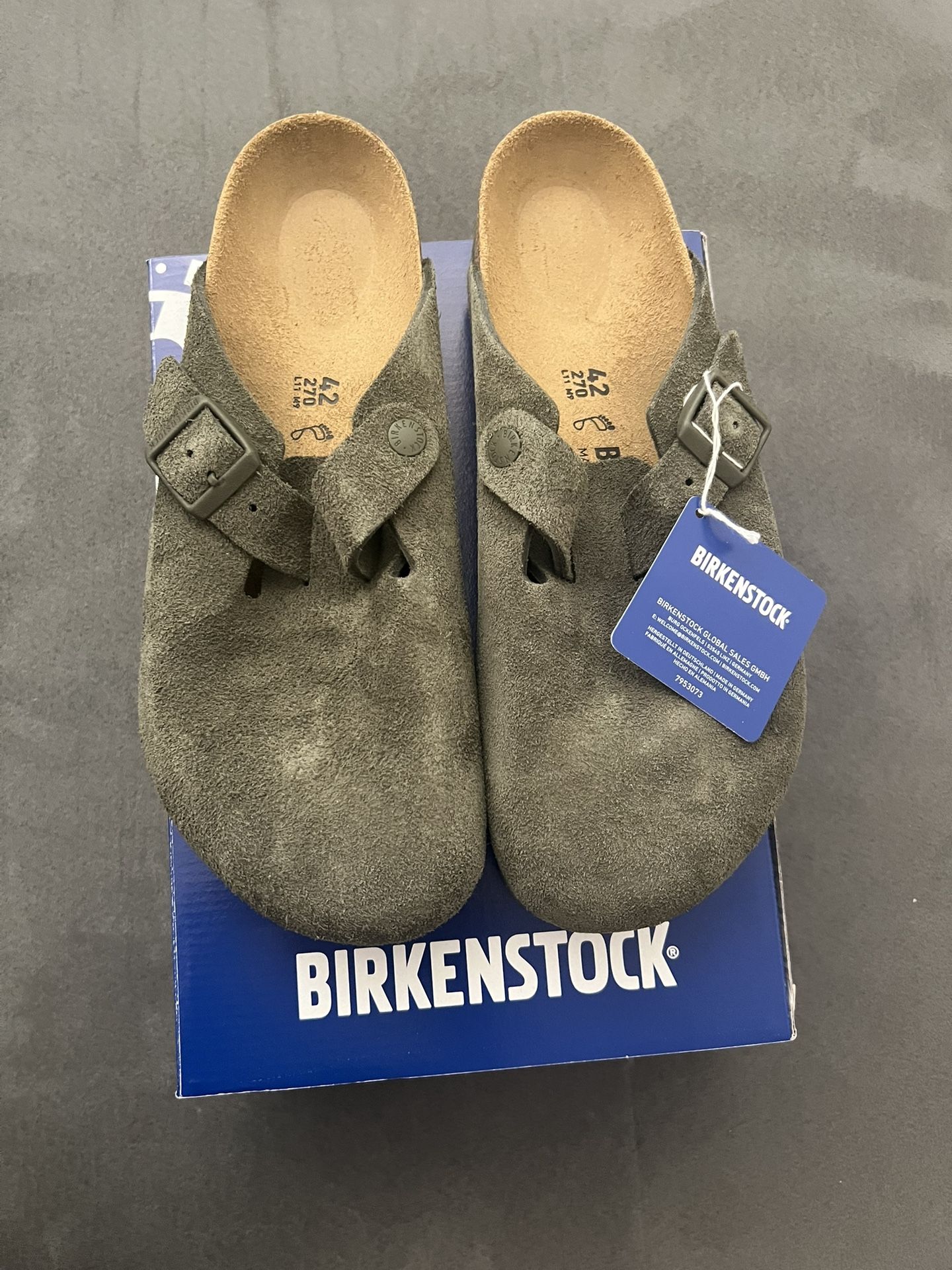 Brand new never worn pair of Birkenstock Boston Clogs in MENS SIZE 9-9.5 (fits me at size 10 for Nike Air Force’s, run slightly large) in Thyme colorway. These are the genuine product and not a fake. I have proof of purchase if necessary and of course you can see them before you buy. Firm on price