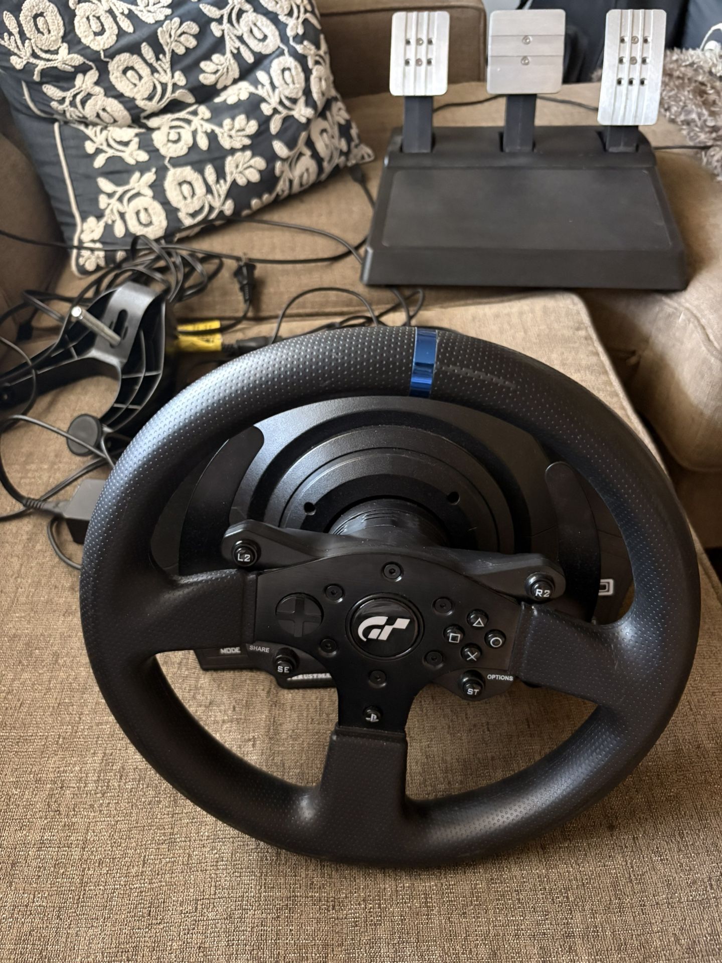 The Thrustmaster T300rs gt edition Originally bought a year ago has barely been used. Has a 2 year warranty which has one year left. Hasn’t been damaged. Comes with three pedals Compatible with both PC and Ps4-5 Will be able to get delivered or picked up same day Price negotiable Shoot me some offers! Works with PS5 games (PS5 games compatibility has been tested and endorsed by Thrustmaster. At stage of publication, PS5 compatibility of the full range have not been yet tested nor endorsed by Sony Interactive Entertainment. Features & details * Official GT License: The Thrustmaster T300 RS GT features an official Gran Turismo license, providing an authentic and immersive racing experience for fans of the series. * Advanced Force Feedback: Equipped with a brushless motor and dual-belt system, the T300 RS GT delivers smooth, responsive, and realistic force feedback, enhancing the realism of your racing simulations. * Detachable Racing GT Style wheel: 11” / 28 centimeter diameter racing wheel featuring a brushed metal central spokes. Reinforced rubber texture on the wheel's entire circumference. * Optimized Pedal Set: The T300 RS GT comes with a high-performance pedal set featuring adjustable pedals for height and spacing, providing precise control and customization for an enhanced ra!