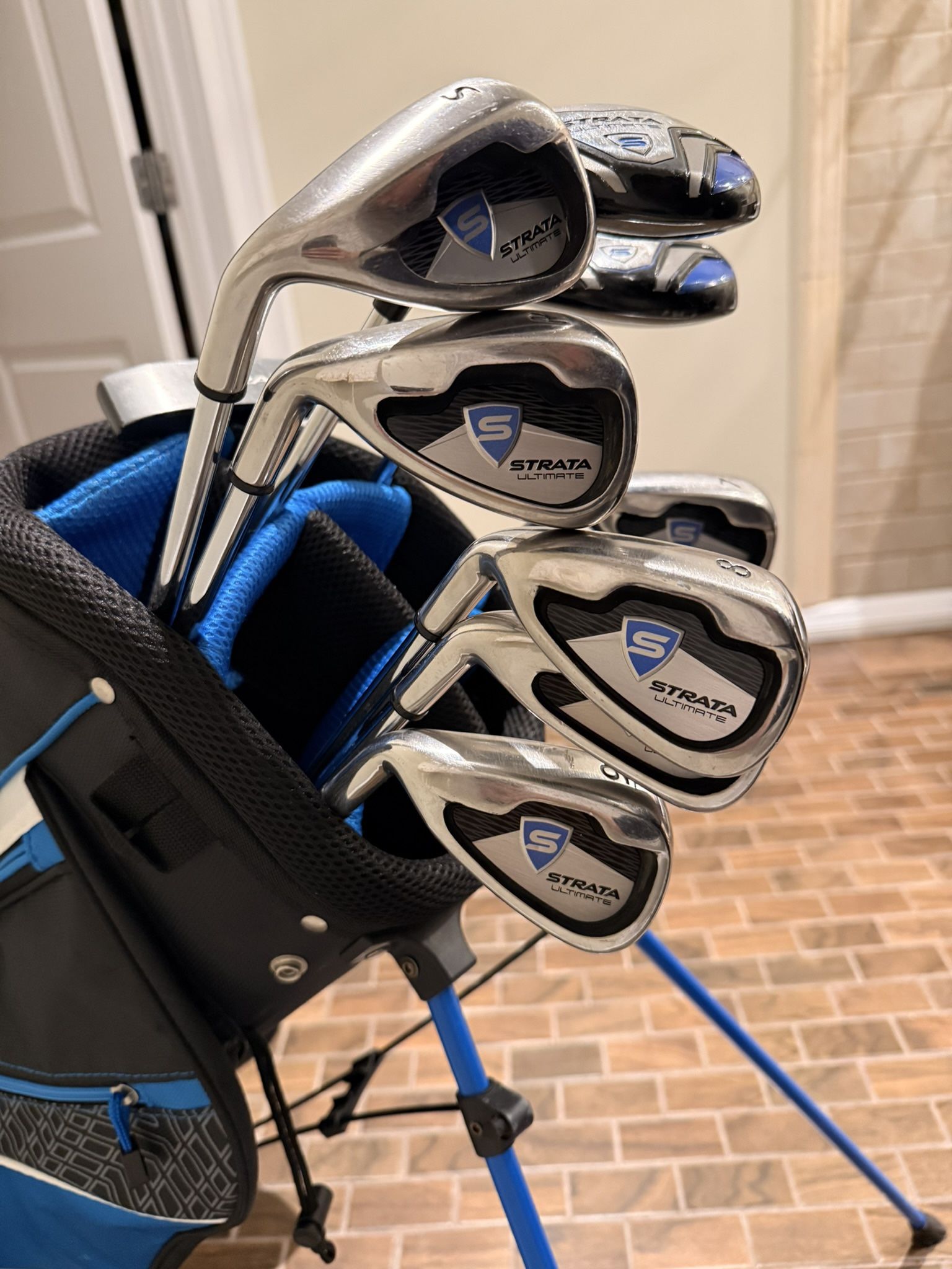Left Handed Clubs Included • Irons: 6, 7, 8, 9 • Pitching Wedge (P) • Sand Wedge (S) • Hybrids: 4H & 5H (4H has Cover) • Putter • Strata stand bag included Clean club faces Grips in good condition Lightweight stand bag (With legs that’s a Plus) Beginner friendly & forgiving Priced to Sell FAST Buying this setup new is over $500 First come First Serve . NO 👎🏻 holds, unless you send a $15 non refundable deposit.