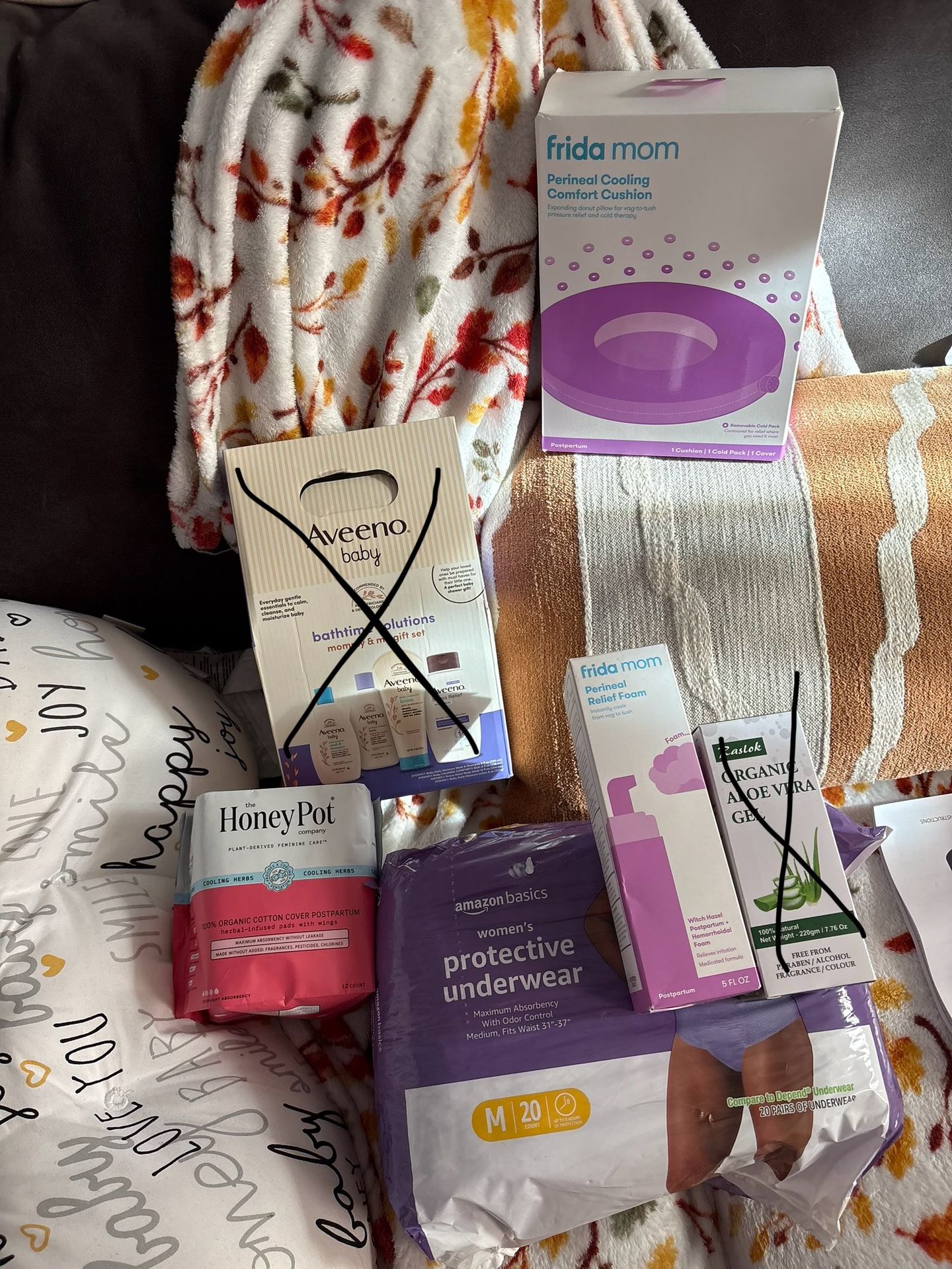Brand new new opened Honey Pot cooling herbs 12ct Amazon basics protective underwear 20 ct Frida mom perineal relief foam Frida mom Perineal cooling comfort cushion
